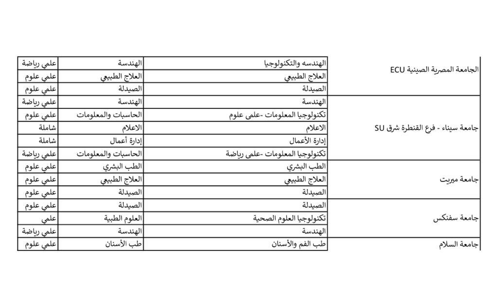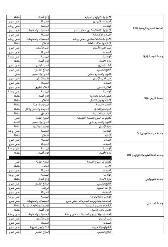 مرفق نتائج الطلبة بأسمائهم والكليات والجامعات التي ينتمون إليها…