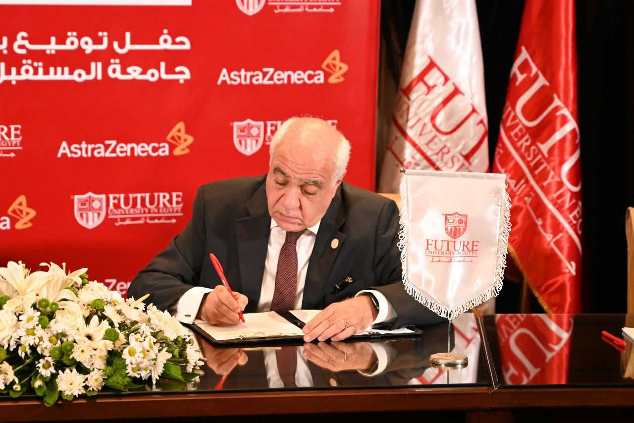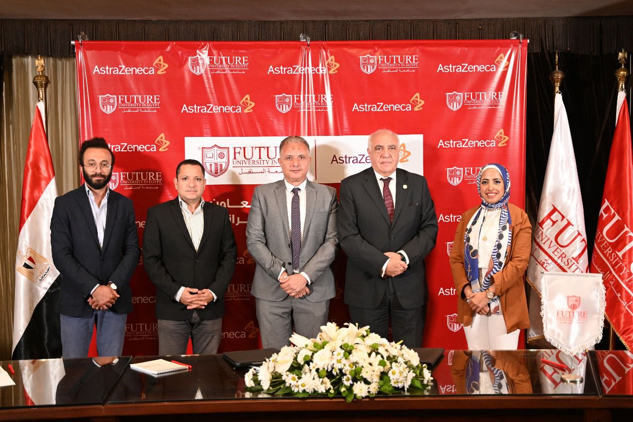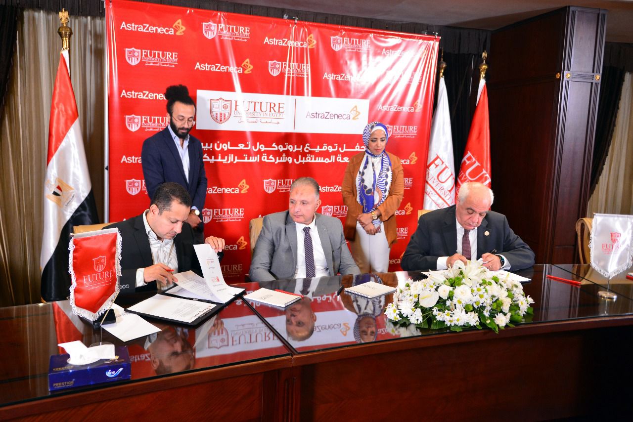 وقع الاتفاقیة عن جامعة المستقبل الدكتور عبادة سرحان، رئیس جامعة المستقبل وعن شركة أسترازینیكا الدكتورمحمد أمین، عضو مجلس الإدارة للشؤون الحكومیة ودعم الاسواق بشركة أسترازینیكا مصربالإنابة عن الدكتور حاتم الورداني رئیس مجلس إدارة شركة أسترازینیكا مصر والدكتور لؤي حسام، مدیر الانتاج والتصنیع وعضو مجلس الادارة بمصنع أسترازینیكا مصر للصناعات الدوائیة