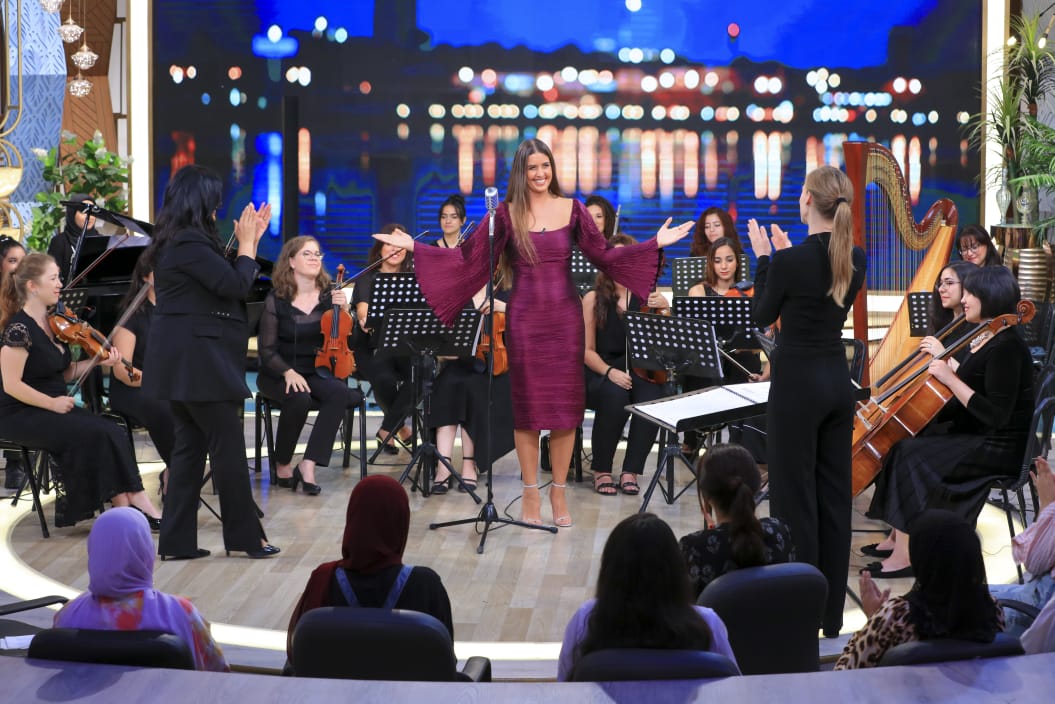وخلال اللقاء، تقدم "فرح الديباني" أغاني "داليدا" على أنغام أوركسترا مكونة من عازفات وتقودها المايسترو الألمانية "ماجدلينا كلين".