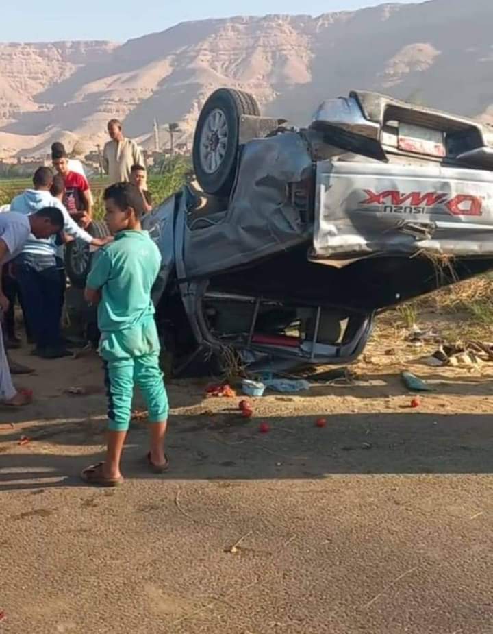 وعلى الفور انتقل ضباط قسم الشرطة لموقع البلاغ وتم الدفع بسيارات إسعاف، وبالفحص تبين حادث انقلاب سيارة ٢ كابينة تحمل لوحة معدنية ه ى ب 3125، نتيجة اختلال عجلة القيادة على الطريق السريع (سوهاج_ نجع حمادى) أمام قرية الشيخ شاهين التابعة لقرية أولاد يحي بحري.