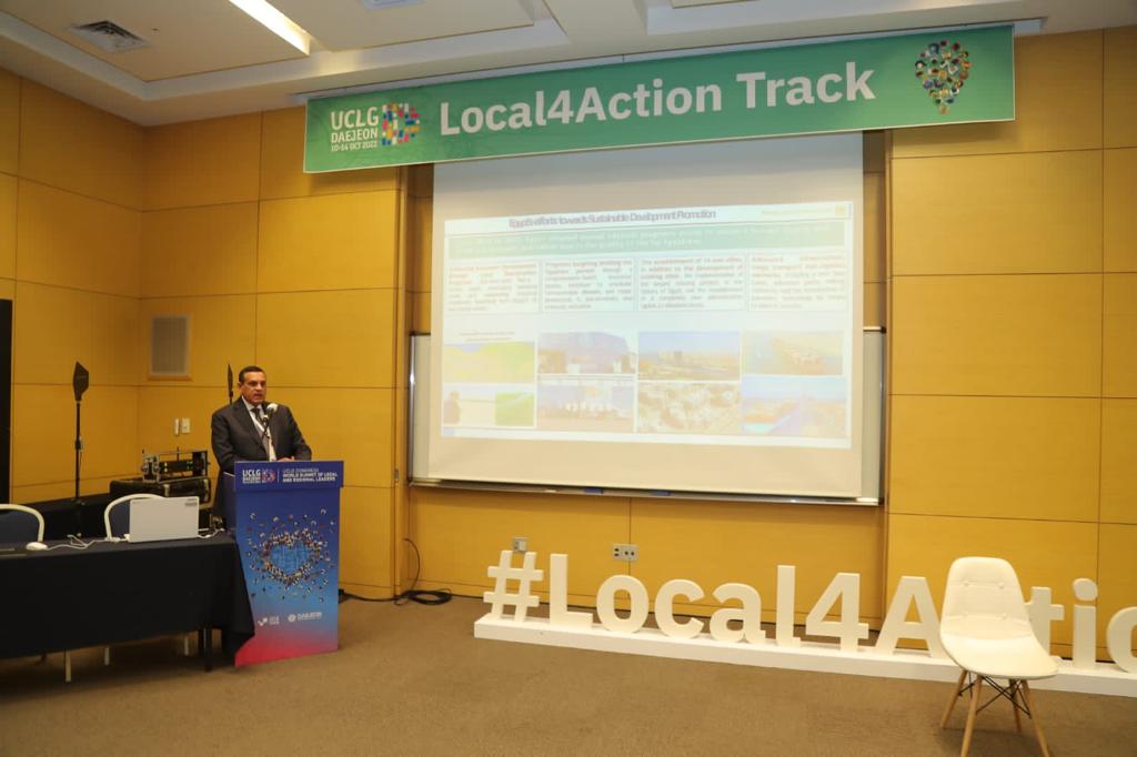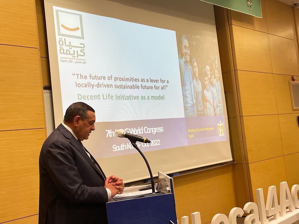 جاء ذلك خلال مشاركة وزير التنمية المحلية في الجلسة الخاصة بمفهوم تحقيق العدالة في مكتسبات التنمية بين المستويات المركزية واللامركزية " كدافع لمستقبل مستدام محلياً " على هامش أعمال الدورة السابعة للمؤتمر العالمى لمنظمة المدن والحكومات العالمية والتي تعقد في مدينة دايجون بكوريا الجنوبية ،