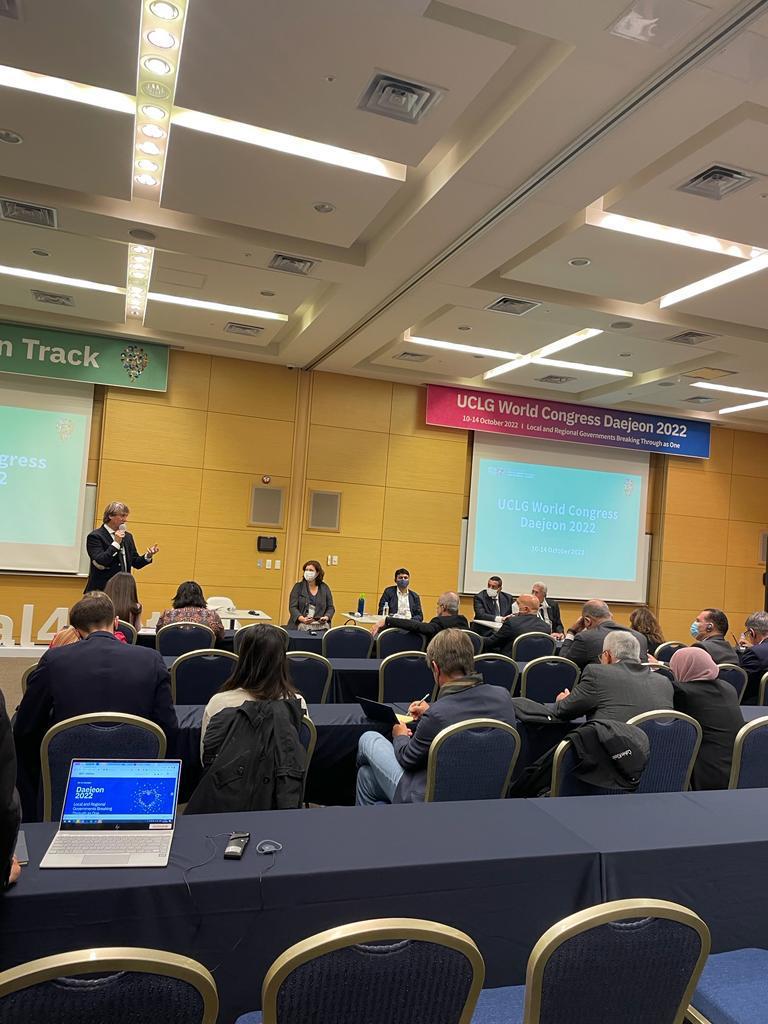 وذلك بمشاركة السيد كارلوس مارتينيز -عمدة مدينة شورية الأسبانية والسيدة نورايني روسلان -عمدة كلانج بماليزيا و السيد رافي رانجان جورو -المعهد الهندي للحكم الذاتي المحلي وعدد من قيادات وزارة التنمية المحلية وسفير مصر في كوريا الجنوبية ومسئولي منظمة المدن والحكومات المحلية العالمية وعدد من المحافظين ورؤساء المدن والحكومات المحلية من مختلف دول العالم .