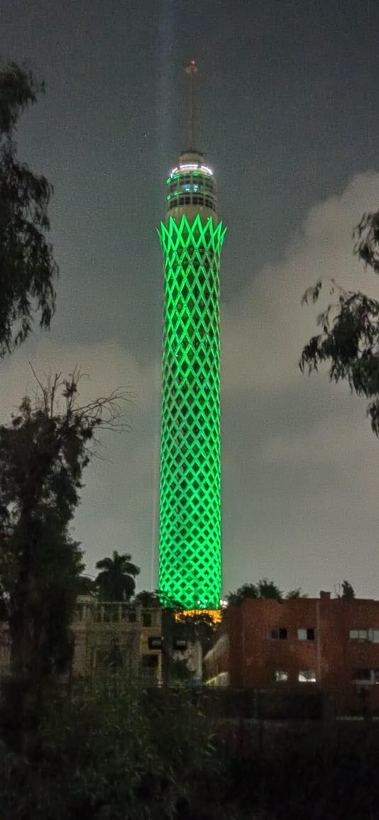 "الصحة" تضيء برج القاهرة باللون الأخضر احتفالا باليوم العالمي للصحة النفسية
