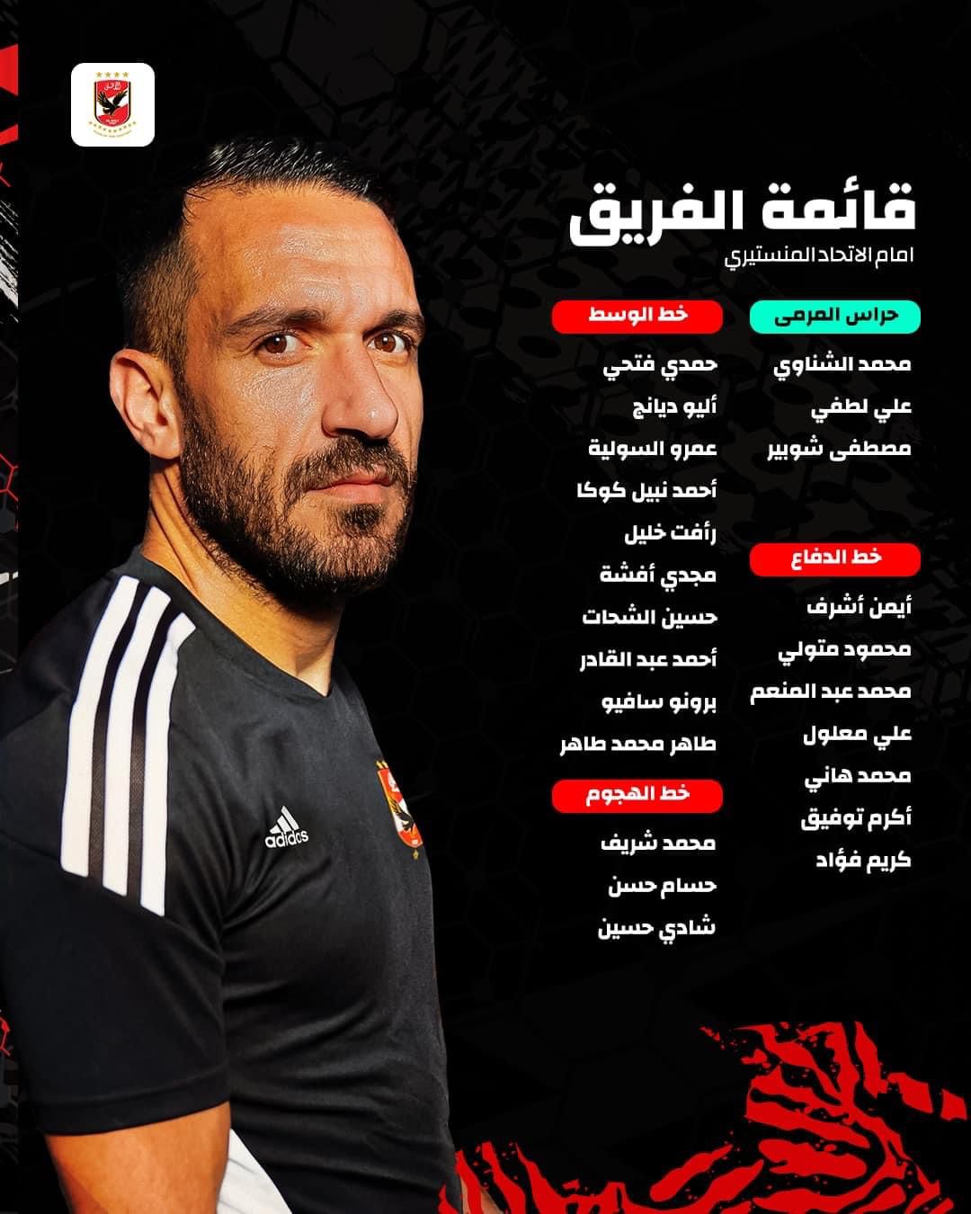 محمد الشناوي، وعلي لطفي، ومصطفى شوبير، ومحمود متولي، وحمدي فتحي، وأحمد عبد القادر، ومحمد شريف، وبرونو سافيو، وأيمن أشرف، وحسين الشحات، وأليو ديانج، وعمرو السولية، وحسام حسن، ومحمد مجدي، ومحمد مجدي أفشة، وشادي حسين، وعلي معلول، ومحمد عبد المنعم، وأكرم توفيق، وطاهر محمد طاهر، وكريم فؤاد، ومحمد هاني، ورأفت خليل، وأحمد نبيل كوكا.