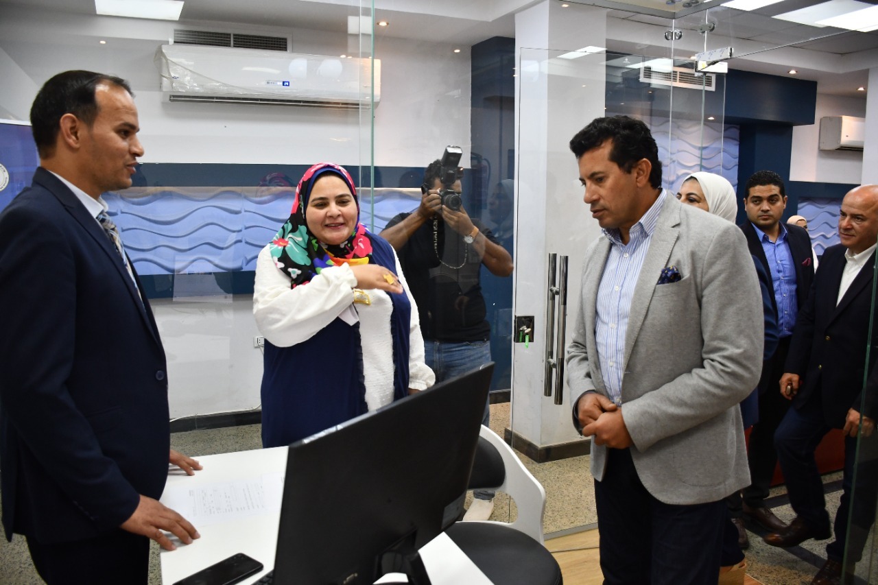 وزير الشباب والرياضة يتفقد وحدة تطوير الأعمال لمبادرة رواد النيل بمركز التنمية الشبابية
