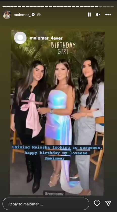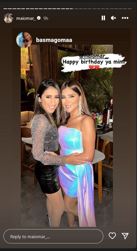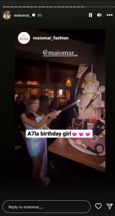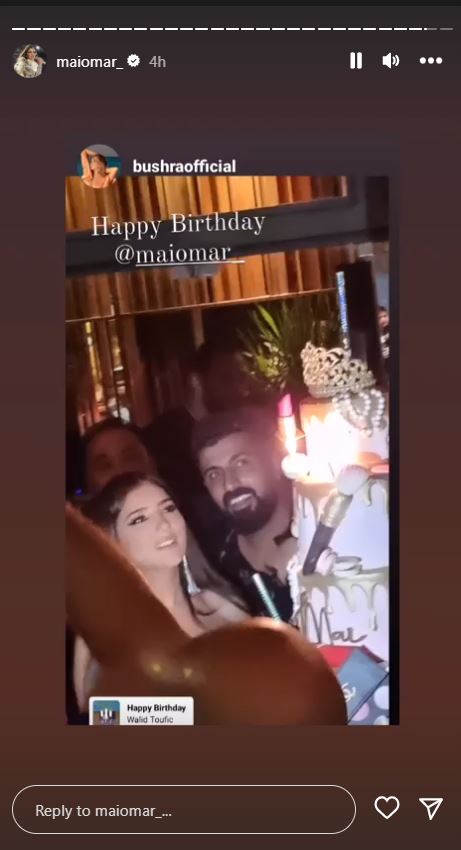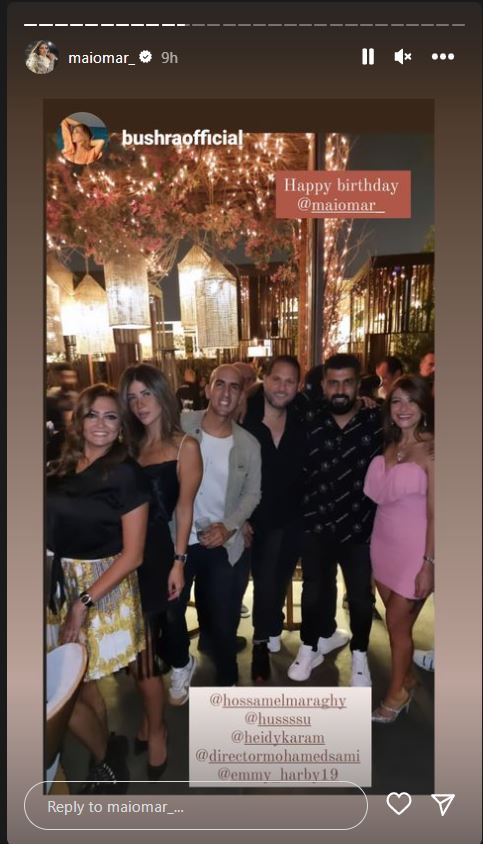 احتفلت الفنانة مي عمر بعيد ميلادها مساء أمس بحضور زوجها المخرج محمد سامي وأصدقائها، وعائلتها، وحرص عدد من الفنانين علي الحضور أبرزهم الفنانة بشري، وهيدي كرم ونشرت مي عمر فيديوهات وصور من الحفل عبر خاصية ستوري "انستجرام".
