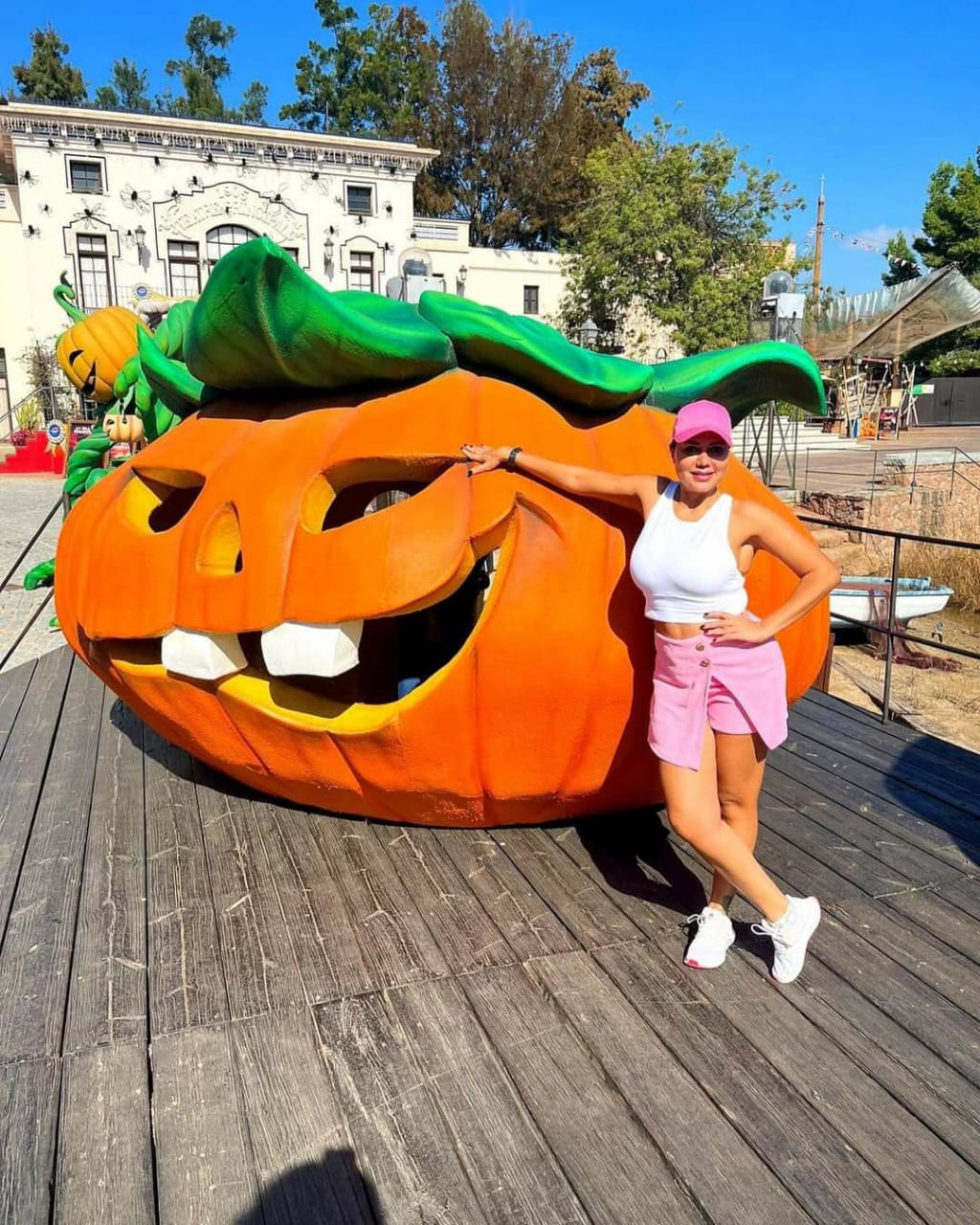 رانيا يوسف تستمتع بأجازتها في أحد الملاهي بأسبانيا