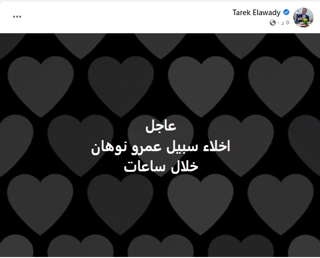 أعلن طارق العوضي ، عضو لجنة العفو الرئاسي، الإفراج عن المحامى عمرو نوهان خلال ساعات ، وذلك عبر صفحته على موقع التواصل الاجتماعى "فيس بوك"