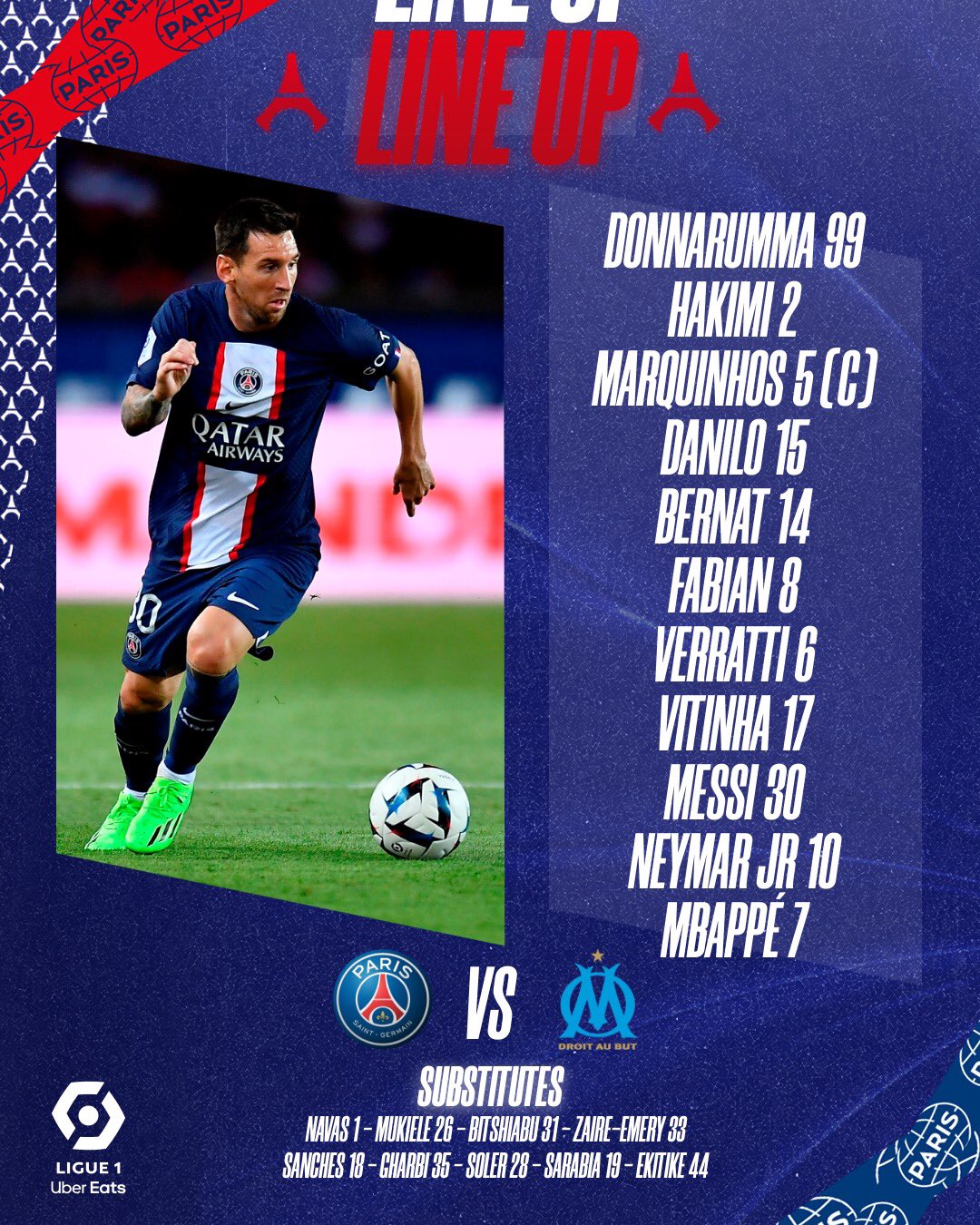 التشكيل الرسمي لباريس سان جيرمان أولمبيك مارسيال في الدوري الفرنسي