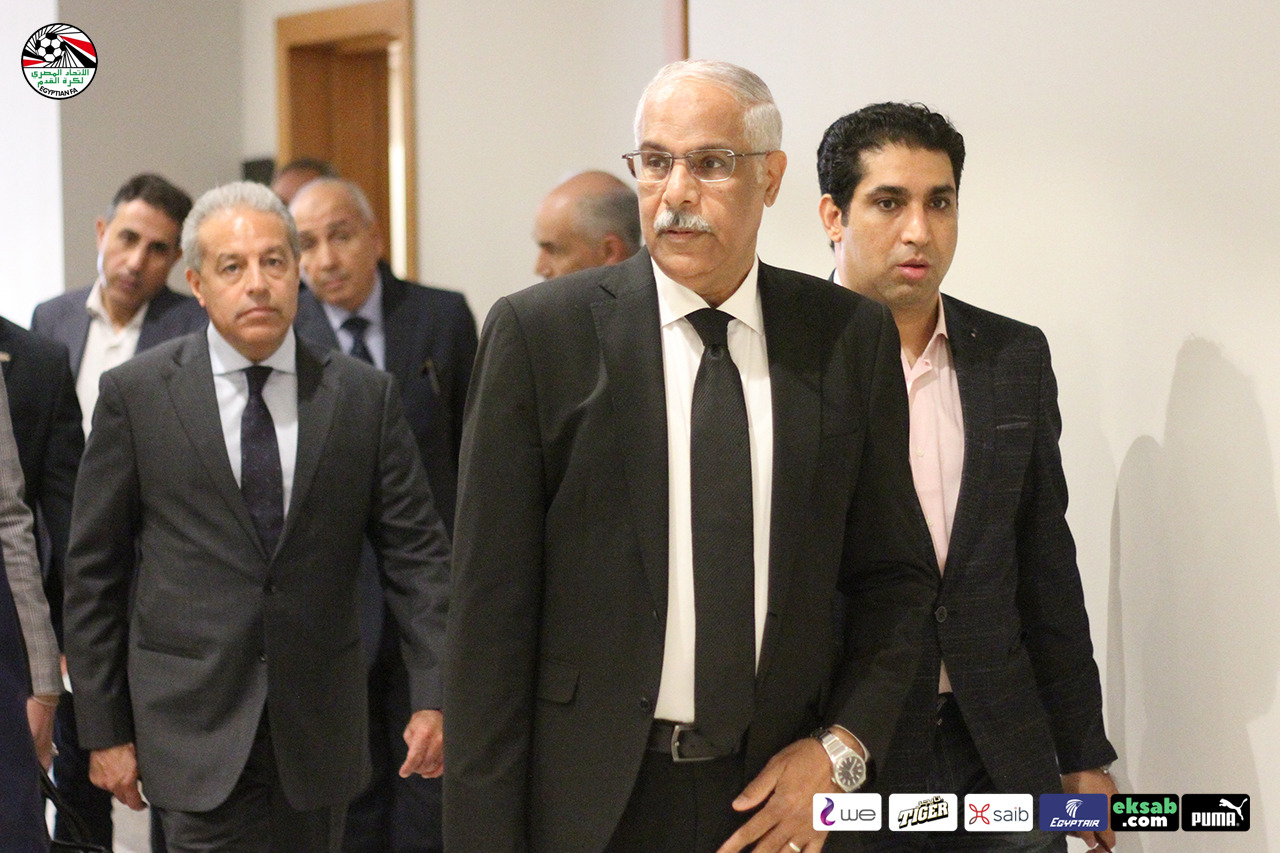 ضم وفد اتحاد الكرة كلا من خالد الدرندلي نائب رئيس الاتحاد، واللواء محمد حلمي مشهور ومحمد أبو الوفا وإيهاب الكومي ودينا الرفاعي أعضاء مجلس إدارة الإتحاد.