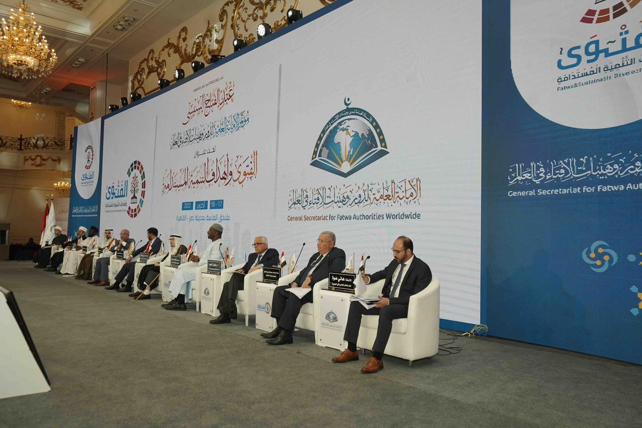 وقال الدكتور محــــــــــــــمد بشـــــــــــــــــــاري أميــــــــــــــن عــــــــــــــام المجــــــــــــــلس العالمــــــــــــــي للمجتمعــــــــــــــات المسلمــــــــــــــــــــــــــــة في كلمة له بعنوان "نحو تنمية مستدامة حضارية" رؤية تأصيلية لانعكاسات الفتوى الإسلامية على تحقيق رفاه الإنسان: إن الدور الفقهي الإفتائي يمثل عصبًا رئيسًا في الجهاز التنفيذي والإجرائي العامل على ديمومة المواكبة الإنسانية الحضارية للمعطيات الواقعية، وقد تقدم في مجال إسهامات نتاجات الجهد الشرعي الفقهي الفتوى الكثير من الرؤى التأصيلية، التي آن أوان تطبيقها مثبتةً دَورها الكبير في تحقيق التنمية المستدامة، والدفع بأسبابها، وتجاوز تحدياتها، مما يخلص لمشاركة فاعلة مع القوى الوطنية المختلفة بتحقيق رفاه الإنسان، وتحقيق أعلى النسب الإيجابية في استراتيجيات التنمية البشرية، وأهدافها الاجتماعية ك تحقيق العدالة بين الجنسين، والتربوية كالحد من مظاهر التنمر، والثقافية. والمساهمة المبنية على وعي يدرك تموقع العالم من خريطة التحديات، مسهمًا في طرح حلول القضايا المناخية.