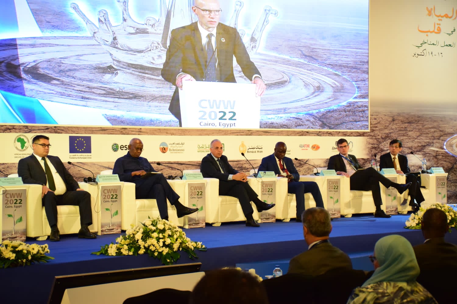 وأشار سيادته لقيام مصر بتنظيم إسبوع القاهرة الخامس للمياه تحت عنوان "المياه فى قلب العمل المناخى" ، وفعاليات المياه ضمن مؤتمر المناخ القادم COP27 ، للعمل على إبراز قضايا المياه والمناخ على المستوى العالمى ، مع توجيه الدعوة لدعم المبادرة الدولية للتكيف بقطاع المياه مع التغيرات المناخية والتي ستطلقها مصر خلال فعاليات مؤتمر المناخ.