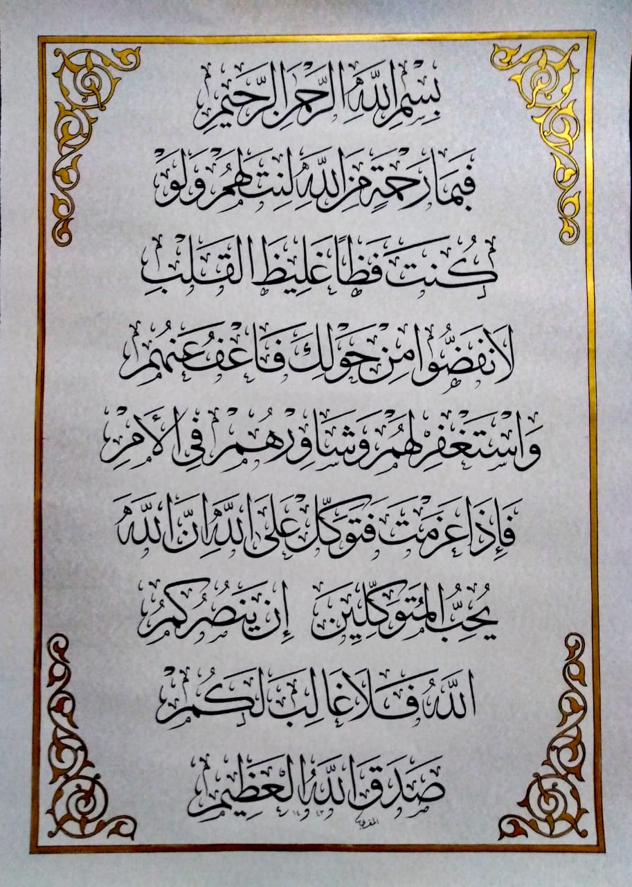 يضم المعرض 43 لوحة للخط العربى على ورق كانسون وورق كوريشه .