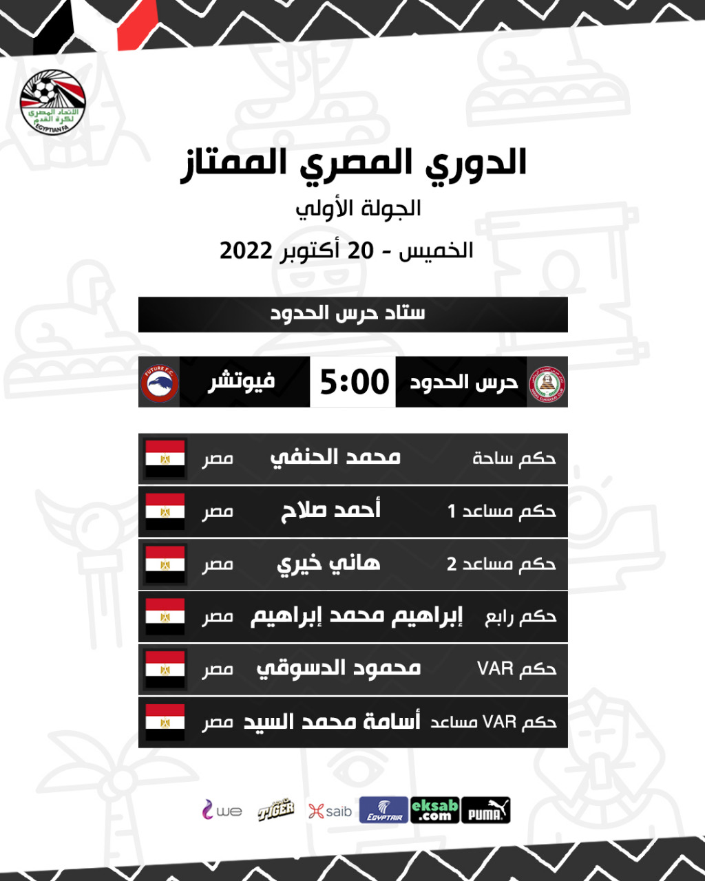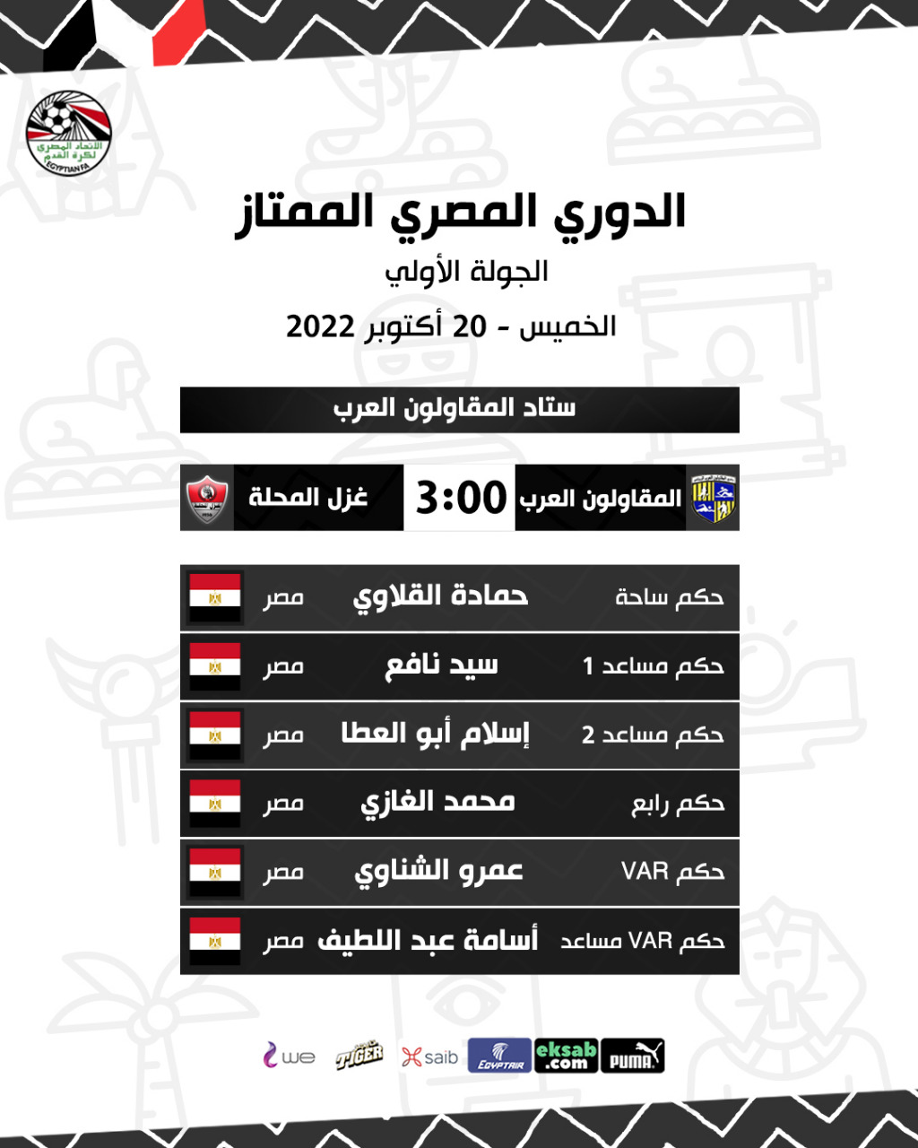 أعلن اتحاد الكرة المصري لكرة القدم برئاسة جمال علام، عن قائمة الحكام المشاركة غداً الخميس، في الجولة الأولي من بطولة الدوري المصري الممتاز لموسم 2022-2023.