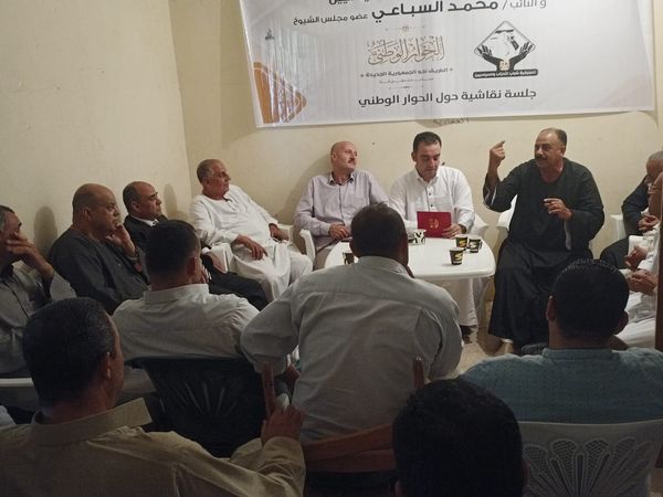عقد النائب محمد السباعي، عضو مجلس الشيوخ عن تنسيقية شباب الأحزاب والسياسيين، جلسة نقاشية، اليوم الخميس مع أهالي قرية الإخيوة بمركز الحسينية بمحافظة الشرقية في إطار جهود التنسيقية لدعم الحوار الوطني.