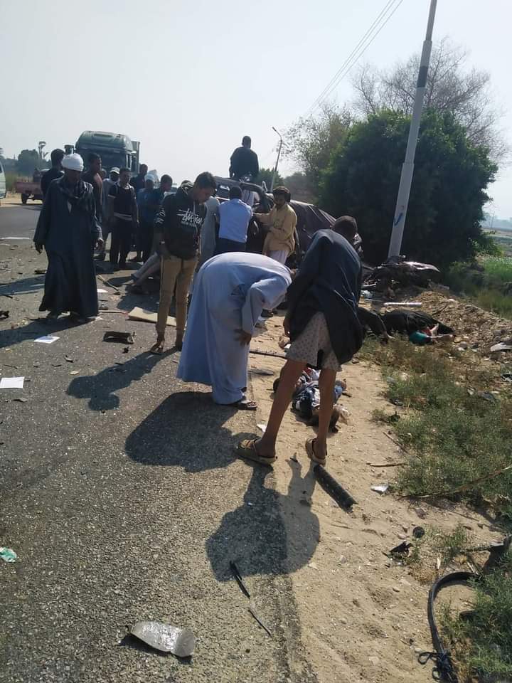مصرع وإصابة 8 أشخاص في حادث تصادم 4 سيارات بسوهاج (صور)