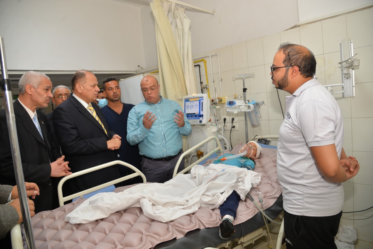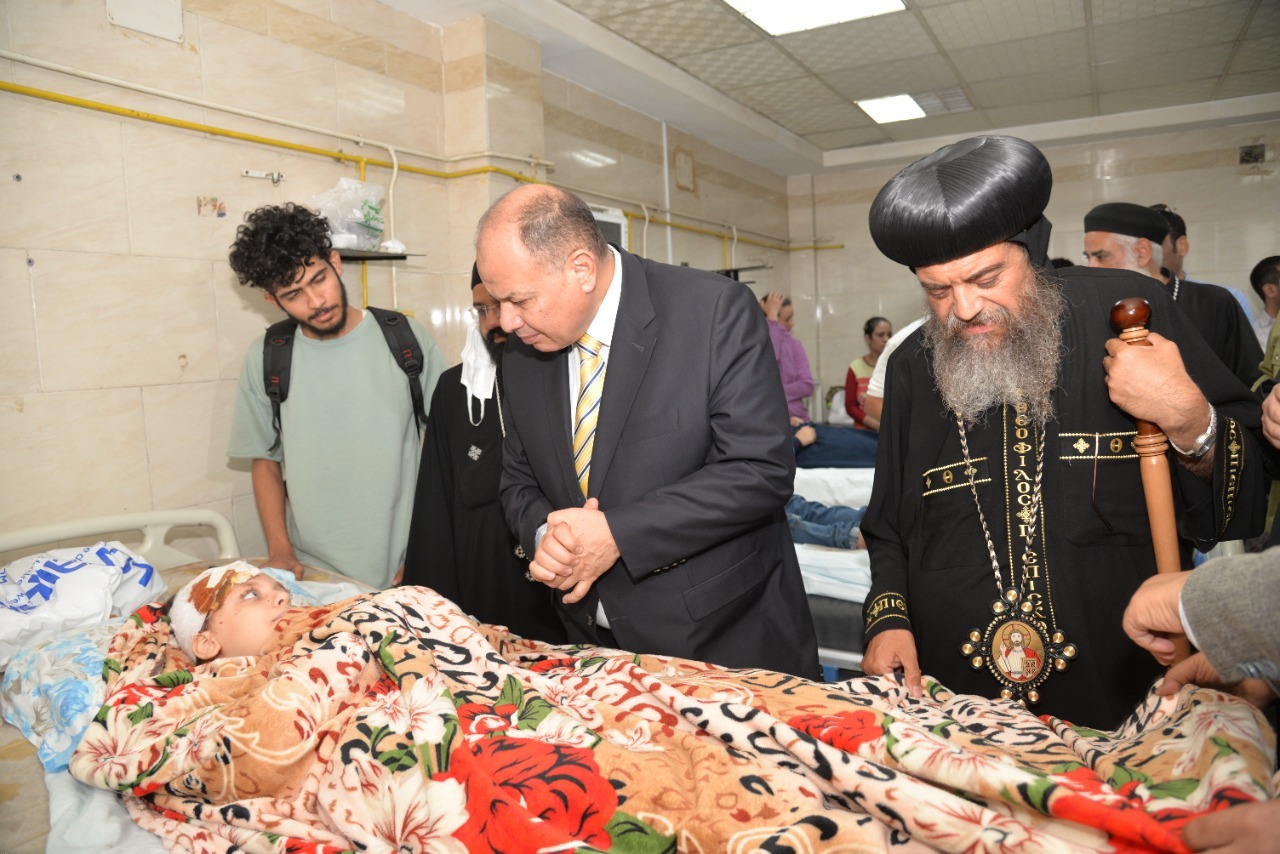 محافظ أسيوط يزور بعض طلاب مدرسة سانت مارى الخاصة بالمستشفى الجامعى اثر اصابتهم
