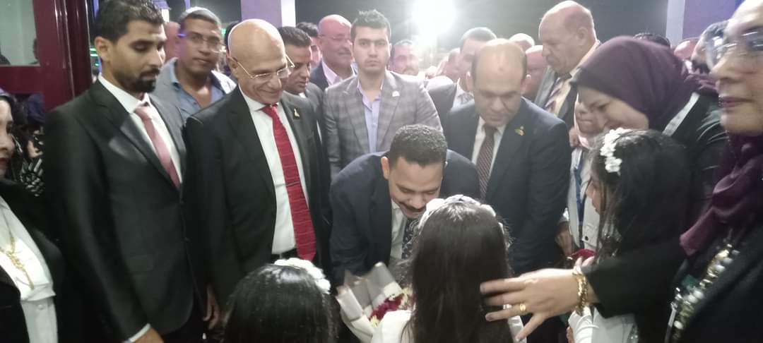واستقبل أعضاء وقيادات ونواب الحزب بالمحافظة، وعددا من أطفال المدراس، المهندس أشرف رشاد الشريف، فور وصوله لمبنى صالة النصر للبترول، بباقة من الورود، والهدايا التذكارية.