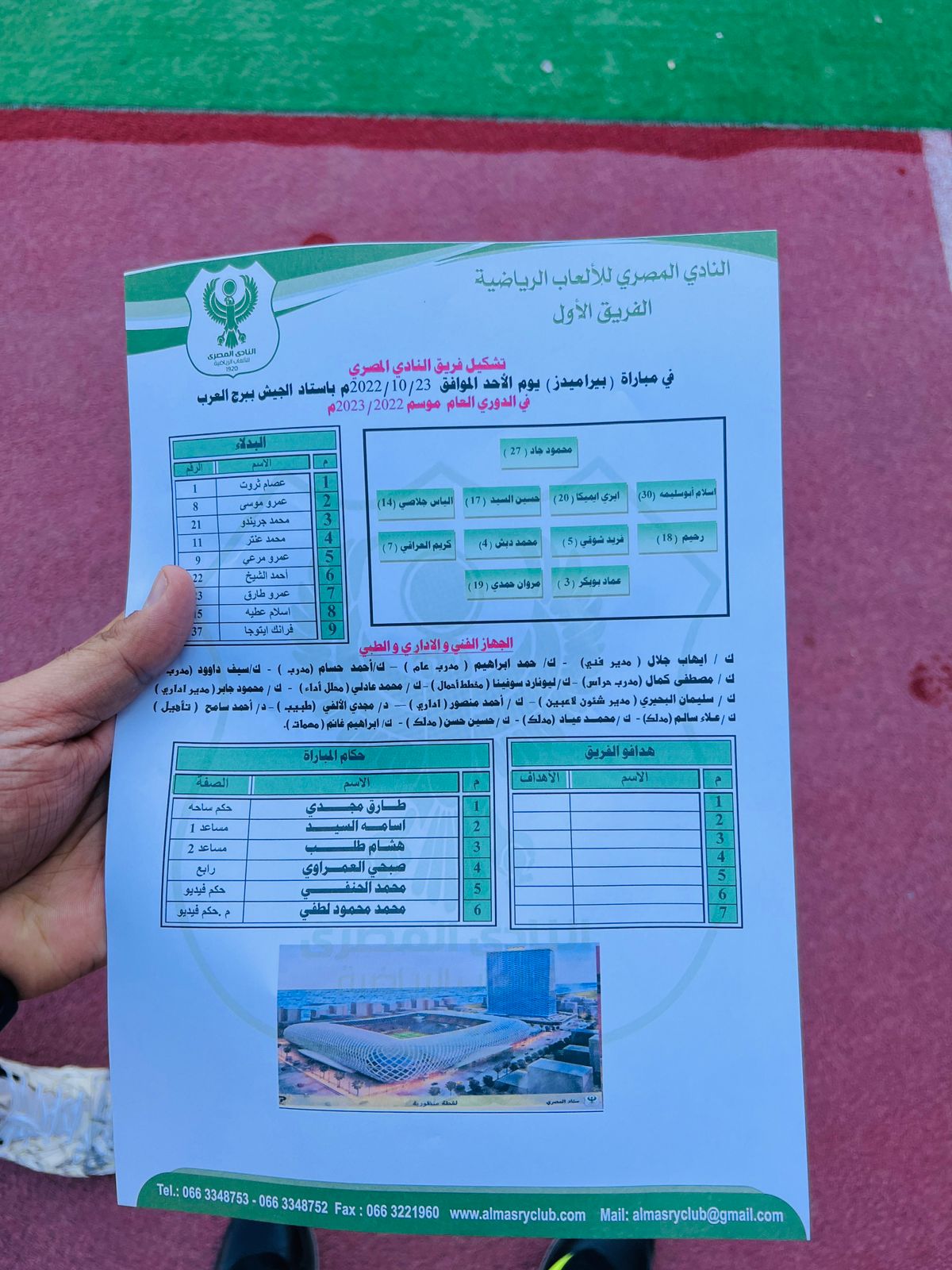 خط الدفاع: محمد حمدي - علي جبر - أسامة جلال - محمد الشيبي