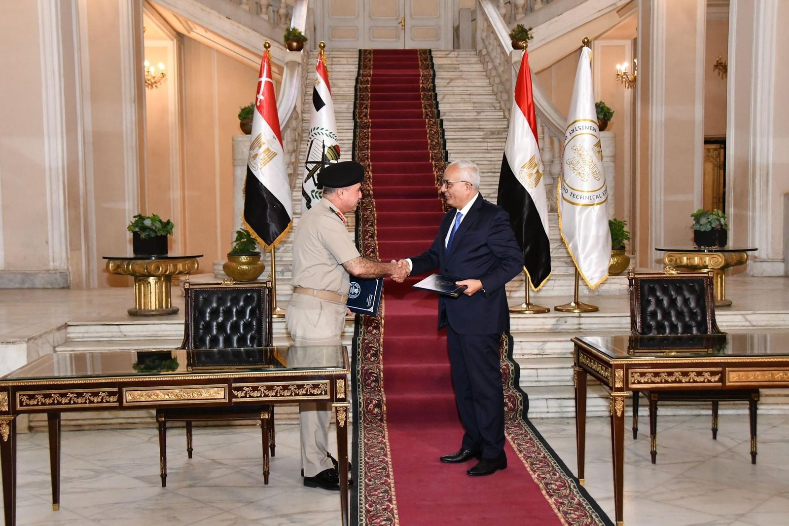 فى إطار حرص القيادة العامة للقوات المسلحة على إعداد أجيال من الشباب قادرة على المشاركة فى تحقيق التنمية الشاملة والمستدامة للدولة وتنمية روح الولاء والإنتماء لدى الشباب داخل وخارج الجمهورية ، وقعت قيادة قوات الدفاع الشعبى والعسكرى بروتوكولى تعاون مع كلاً من وزارة التربية والتعليم والتعليم الفنى ووزارة الدولة للهجرة وشئون المصريين بالخارج ، بهدف تطبيق التأسيس العسكرى لعدد (100) مدرسة من مدارس التعليم الفنى بدءاً من العام الدرسى 2022 / 2023 ، بالإضافة إلى تأهيل شباب المصريين بالخارج وإعداد كوادر قادرة على ممارسة القيادة فى شتى المجالات بما يتناسب مع متطلبات العصر الحديث والتطور التكنولوجى .