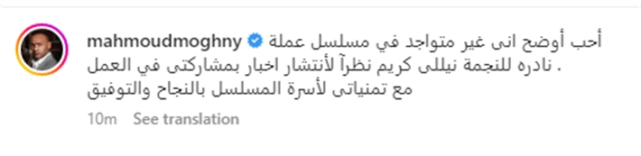 ونشر محمود عبد المغني صورة له مع نيللي كريم عبر حسابه على موقع التواصل الاجتماعي “انستجرام”، موضحا أن ما يكتب في الأخبار عن مشاركته في العمل غير صحيحة.