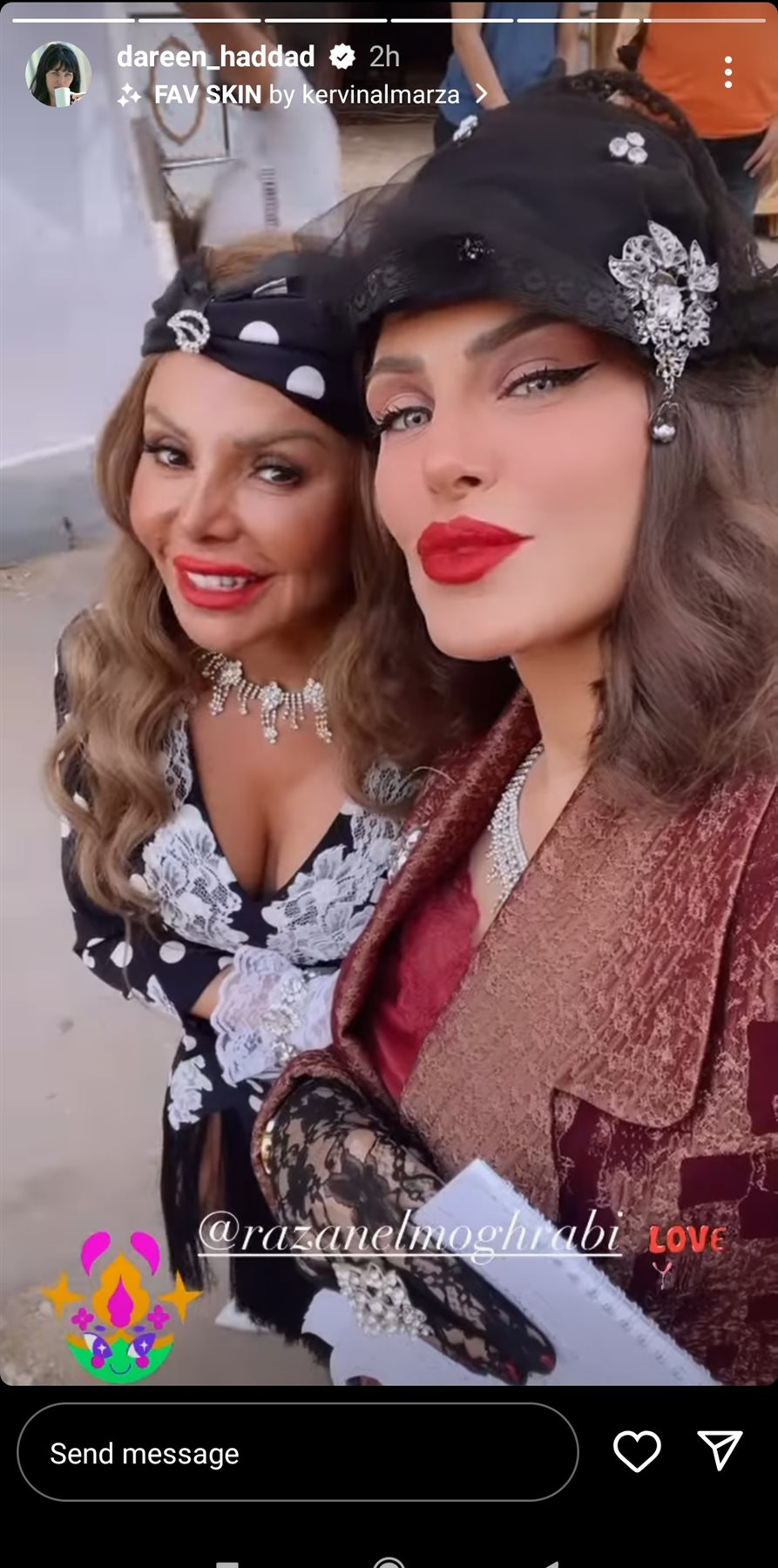 ونشرت دارين حداد، مقطع الفيديو، عبر حسابها الشخصي بموقع انستجرام، وظهرت من خلاله برفقة الفنانة رزان مغربي.