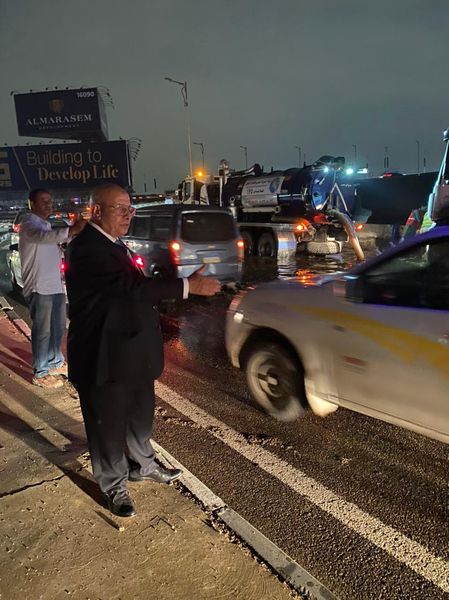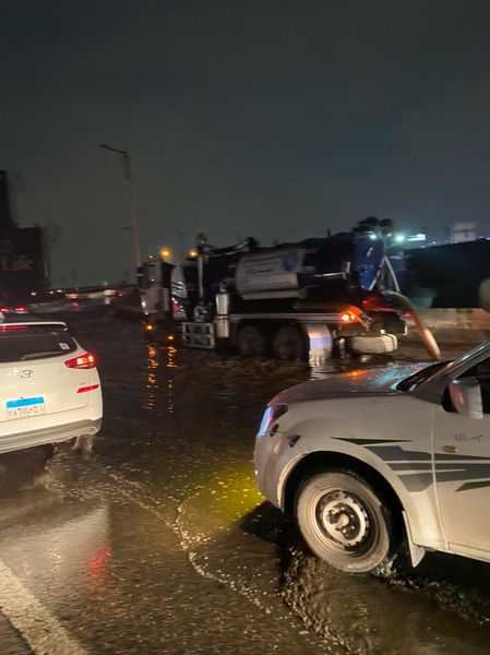 رئيس مياه القاهرة يتابع أعمال شفط مياه الأمطار بمحور المشير