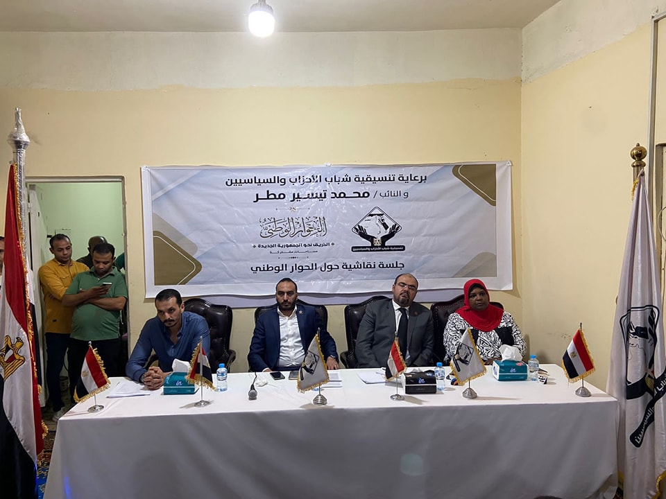 عقد النائب محمد تيسير مطر، عضو مجلس النواب عن تنسيقية شباب الأحزاب والسياسيين، جلسة نقاشية مع جمعيات ومؤسسات المجتمع المدني بمنطقة دار السلام، اليوم الأربعاء حول محاور الحوار الوطني، وذلك ضمن الأنشطة والفعاليات التي تعقدها التنسيقية لتعريف المواطنين والمؤسسات بالحوار الوطني ومحاوره.