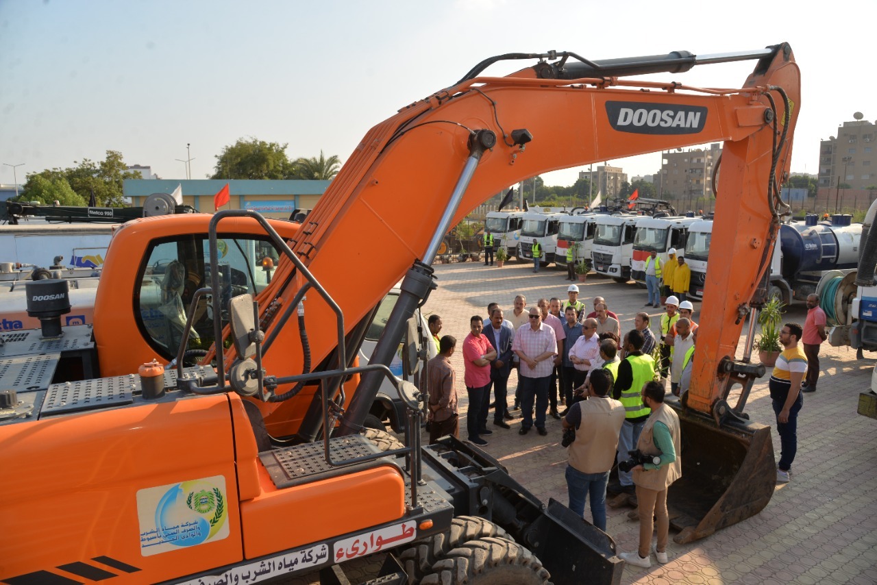 محافظ أسيوط ورئيس شركة مياه الشرب يشهدان اصطفاف معدات شركة المياه تحسبًا لسقوط الامطار