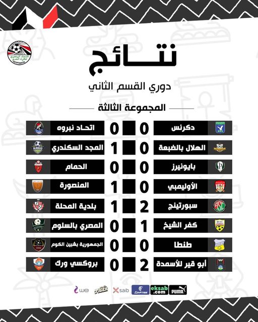 تعرف علي نتائج مواجهات القسم الثاني من الدوري المصري