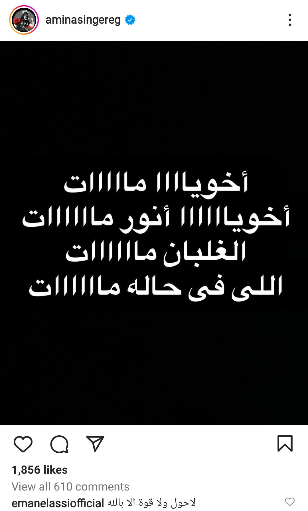 أعلنت المطربة أمينة عن حزنها الشديد، لوفاة شقيقها أنور، صباح اليوم، وكتبت أمينة عبر حسابها الشخصي على "انستجرام": قائلة:"أخويا مات.. أخويا أنور مات.. الغلبان مات.. اللي في حاله مات".