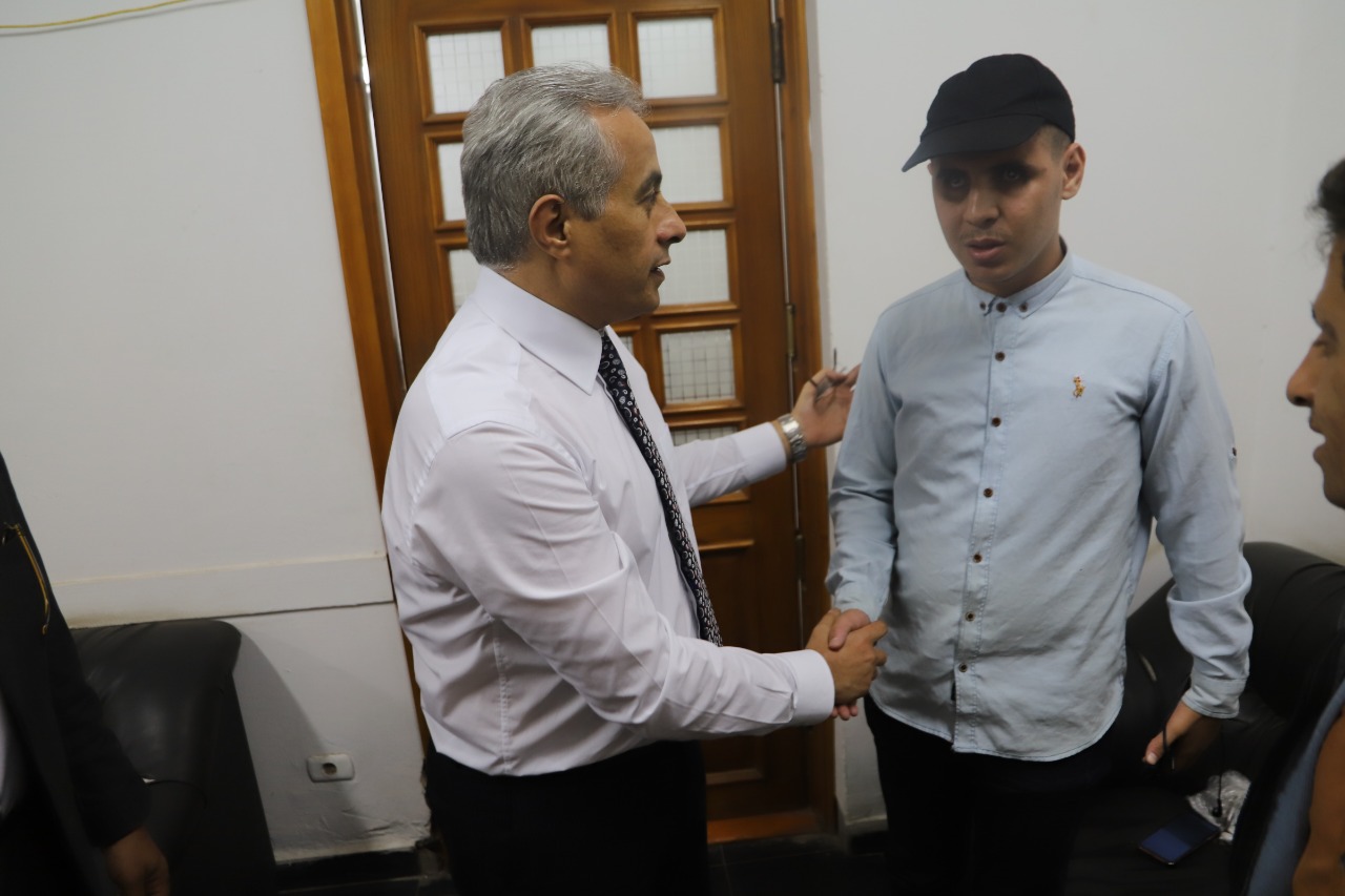 وكان "الوزير" قد إستقبل بديوان عام "الوزارة" 7 من "المكفوفين "وهم:ابراهيم حسن علي،واسامة محمود احمد ،ويوسف عبدالعال عارف،وحسين محمد عبدالصبور،وأحمد حسن جودة ،ومحمد عاطف ثابت،واحمد جمال زين،وإستمع إلى مطالبهم،ومشاكلهم.