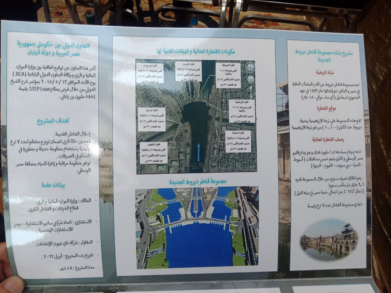 جاء ذلك بحضور العميد علاء عبدالجابر سكرتير عام مساعد المحافظة والنائب حمادة قرشي والنائب حمادة زهير فولي أعضاء مجلس النواب والنائب مصطفى كحيلي عضو مجلس الشيوخ والمهندس حسام طاهر نائباً عن رئيس قطاع الخزانات والقناطر الكبرى والمهندس عز الدين محمود طلب المهندس المقيم بالمشروع والمهندس حاتم مختار رئيس الادارة المركزية للموارد المائية والرى بمحافظة أسيوط ومحمود نجار رئيس مركز ومدينة ديروط والمهندس عمر سيف النصر مدير عام رى أسيوط والدكتور عاصم قبيصي وكيل وزارة الأوقاف وضياء مكاوي رئيس اقليم وسط الصعيد الثقافي.