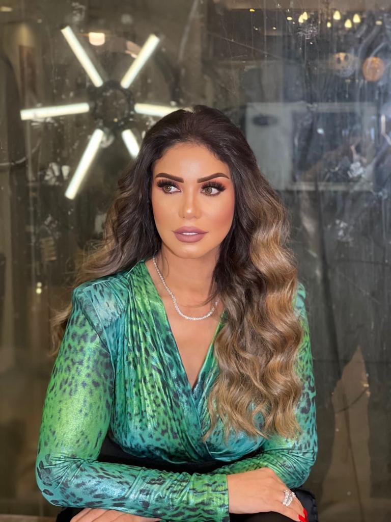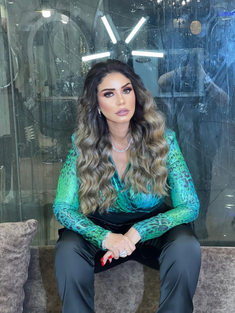 وخضعت لجلسة تصوير جذابة ومبهرة اتسمت بالخفة والدلال بلمسات حملت توقيع وليد التركي، حيث ارتدت جمبسوت باللونين الأخضر الزيتى والأسود، من إحدى دور الأزياء الفرنسية الشهيرة، تميز بأكمامه الطويلة وياقه مفتوحة على شكل حرف V.