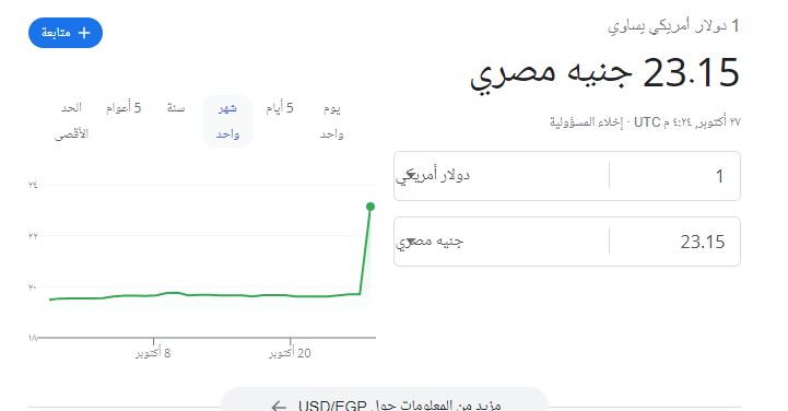 استقر سعر الدولار في ختام التعاملات اليومية، على سعر 23.15، ليكسر حاجز الـ23جنيه للبيع للمرة الأولي في تاريخه وفقًا لـ مؤشر “بلومبرج”.