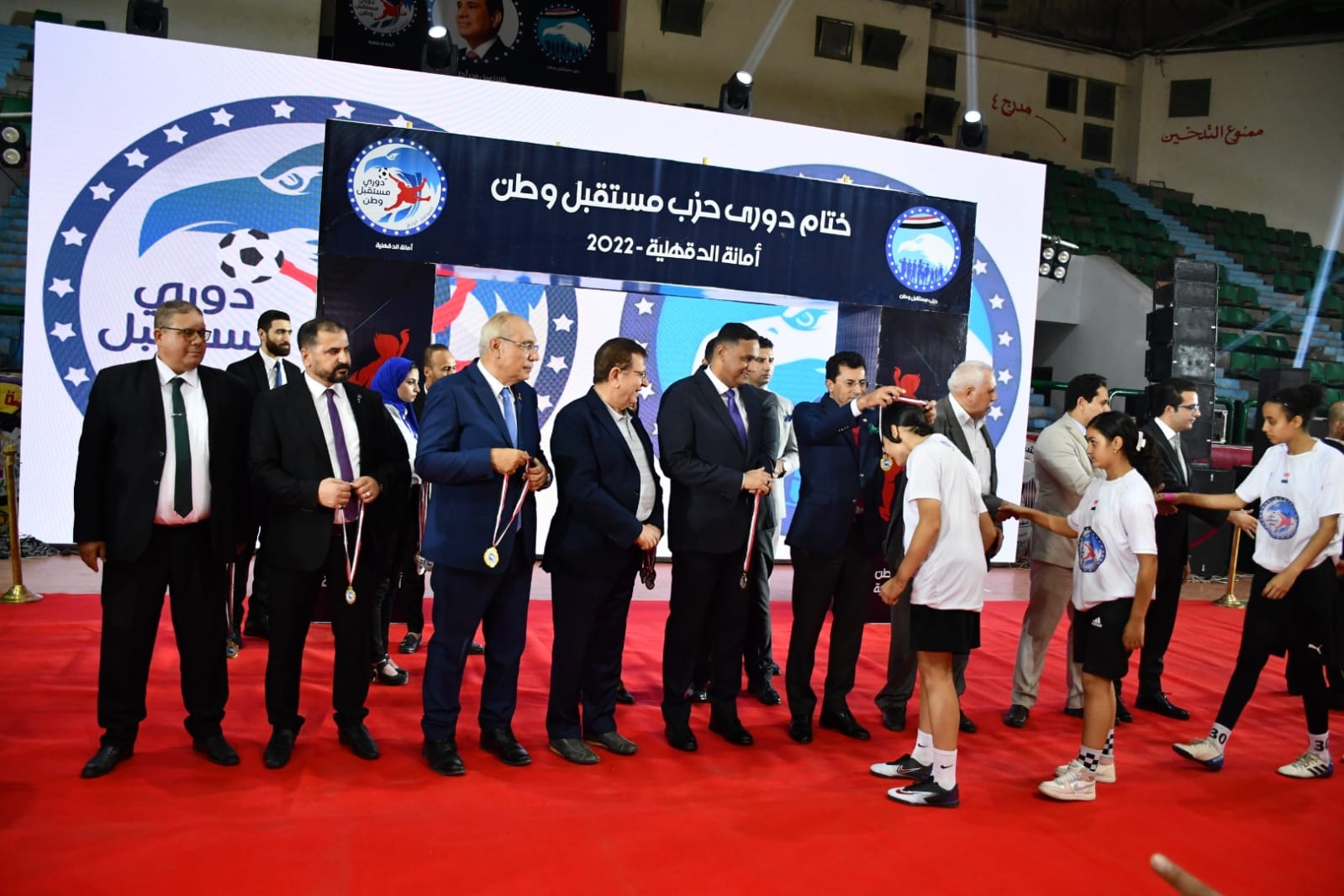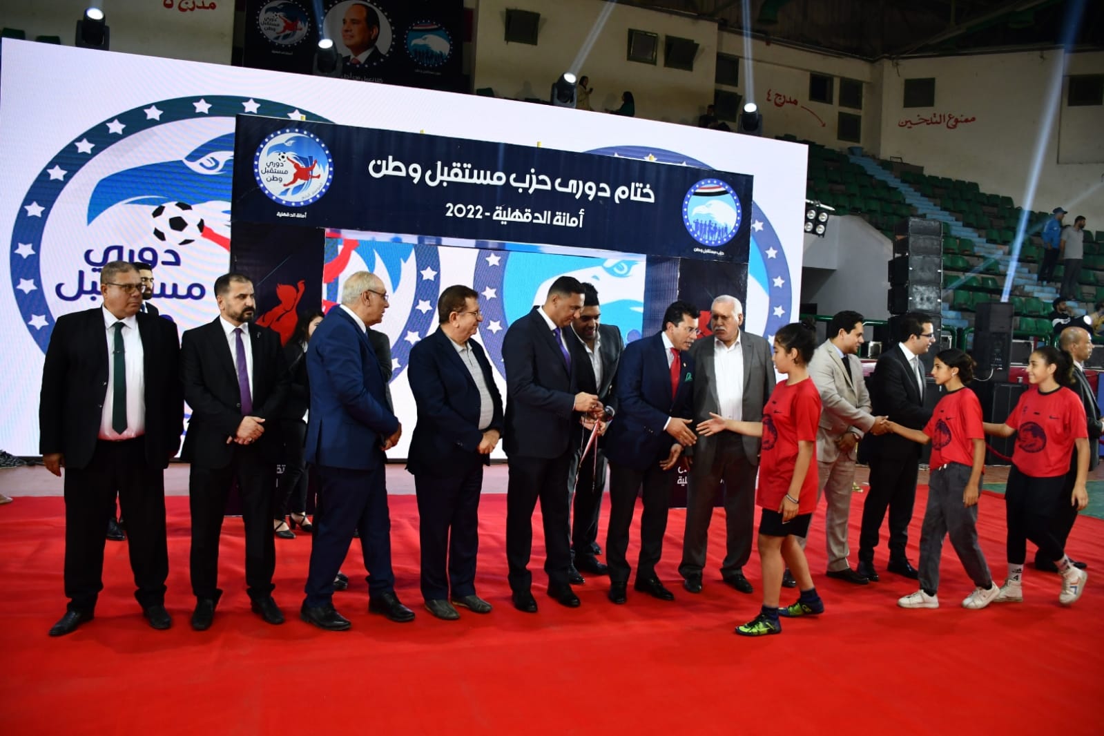 شهد الدكتور أشرف صبحي وزير الشباب والرياضة، والدكتور أيمن مختار محافظ الدقهلية، الحفل الختامي لبطولة دورى مستقبل وطن لكرة القدم أمانة محافظة الدقهلية في نسخته الرابعة، وسط حضور جماهيري كبير بالصالة المغطاة باستاد المنصورة الرياضي، بحضور من القيادات التنفيذية والشعبية والتشريعية وقيادات وزارة الشباب والرياضة، وأعضاء هيئة مكتب الحزب، وأعضاء مجلسي النواب والشيوخ.
