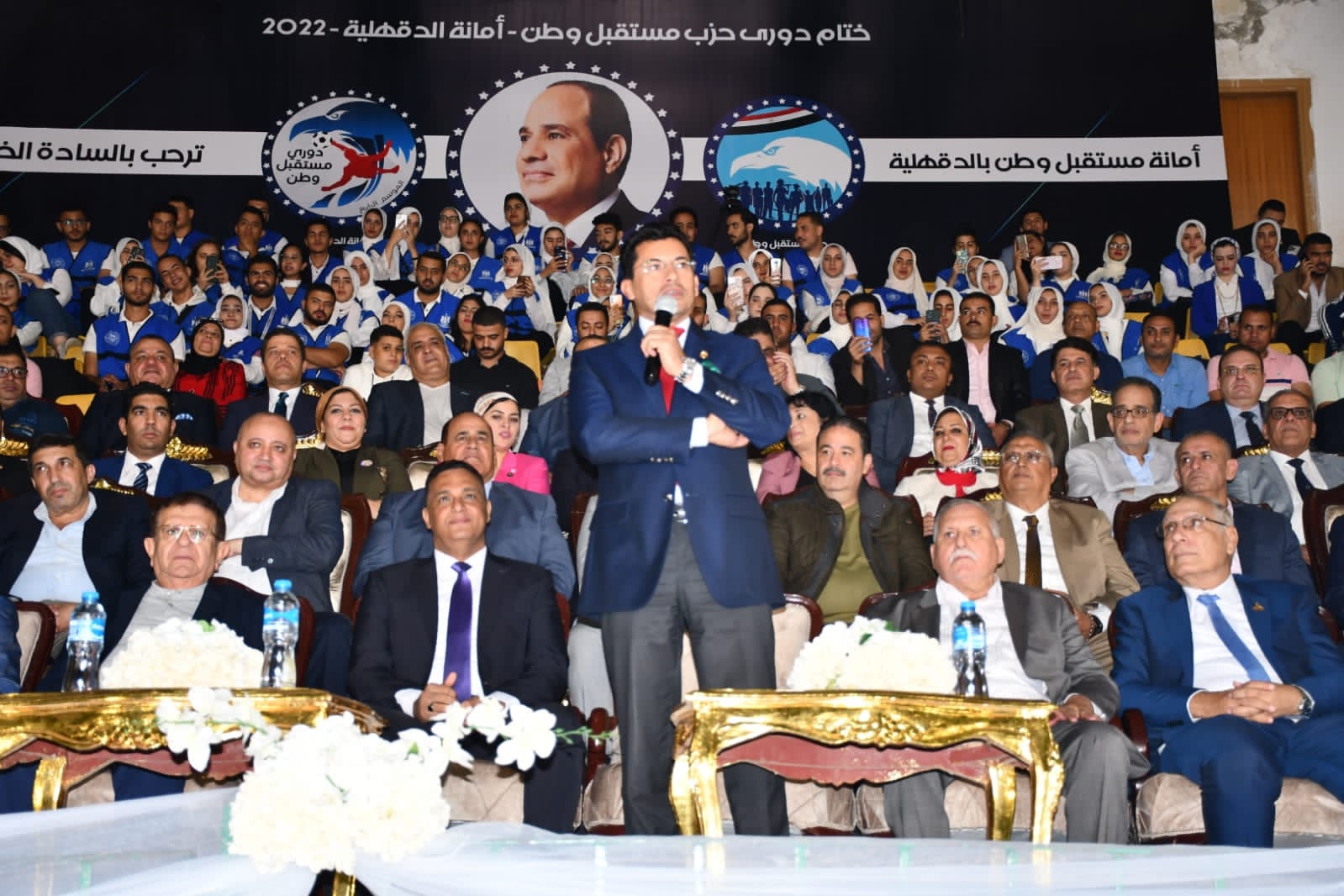 وزير الشباب والرياضة ومحافظ الدقهلية يشهدون حفل نهائي دوري مستقبل وطن بالدقهلية