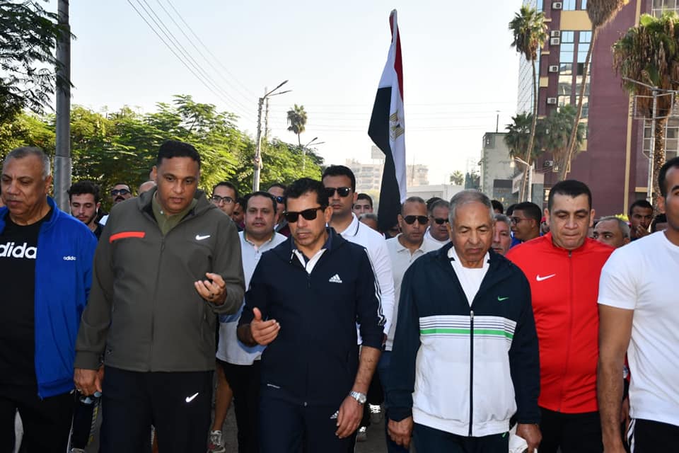 وزير الرياضة ومحافظ الدقهلية يقودان ماراثون للمشي.. ويتفقد نادي الحوار