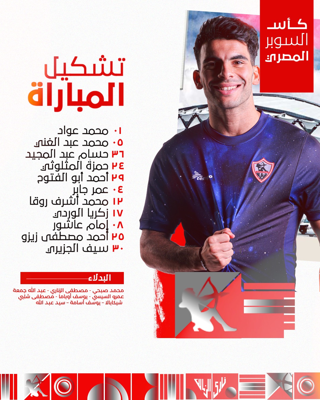 التشكيل الرسمي للزمالك لمواجهة الأهلي بالسوبر المصري