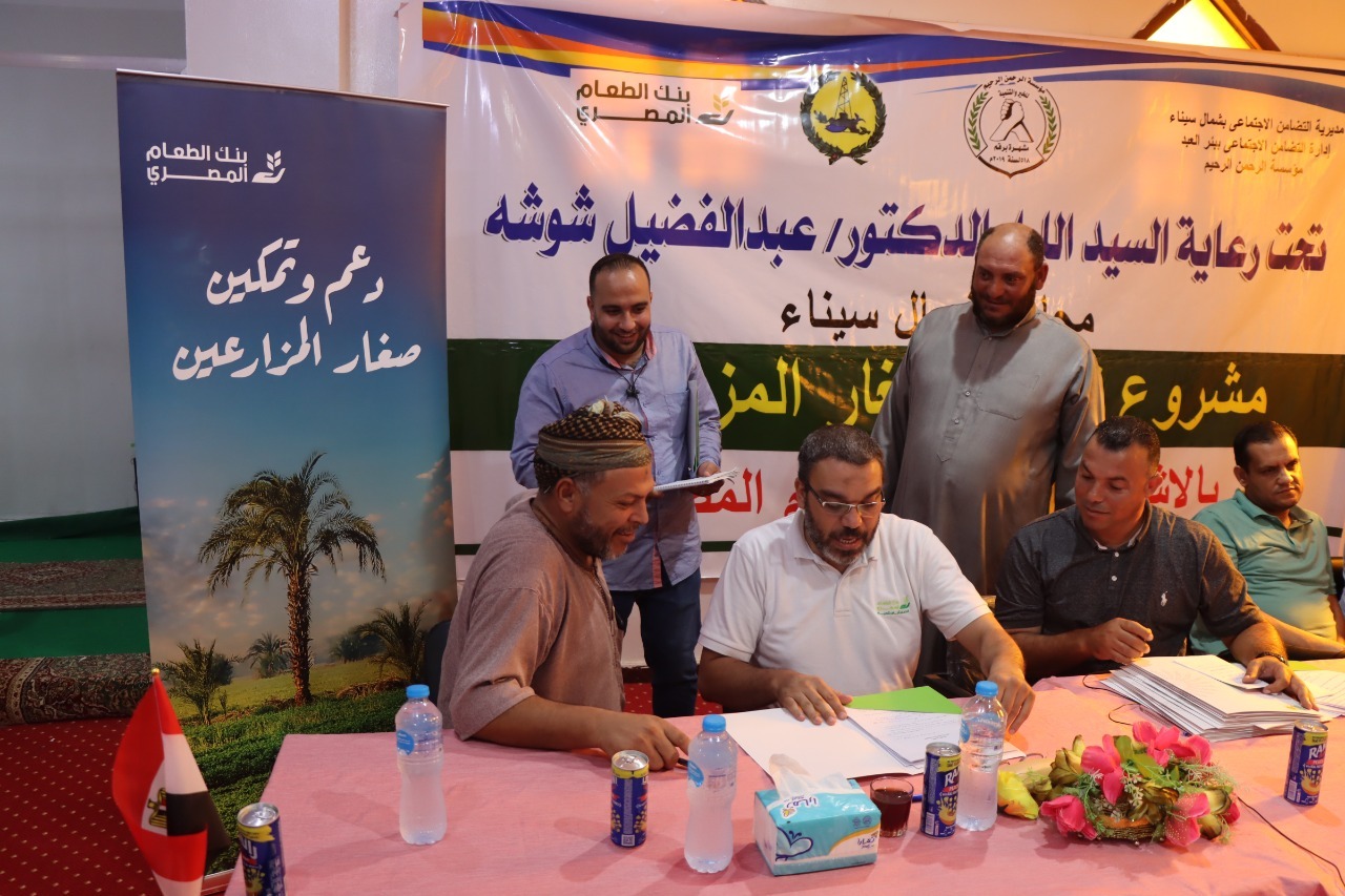 وقع بنك الطعام المصري عقود مع 31 مزارع بمدينة بئر العبد بمحافظة شمال سيناء، لتوريد واستلام محصول الفول لعدد 65 فدان، لمدة دورة زراعية كاملة على مدار عام، وذلك ضمن برنامج بنك الطعام لدعم صغار المزارعين بهدف زيادة دخلهم، وعدم استغلال التجار لهم، وحفاظا على الرقعة الزراعية وزيادة إنتاج المحاصيل، تطبيقا لأحد أهم أهداف بنك الطعام المصري بدمج صغار المزارعين في سلاسل الامداد.