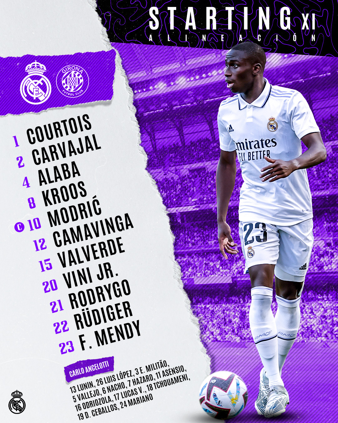 الدفاع: ميندي، ألابا، روديجر، كارفاخال.