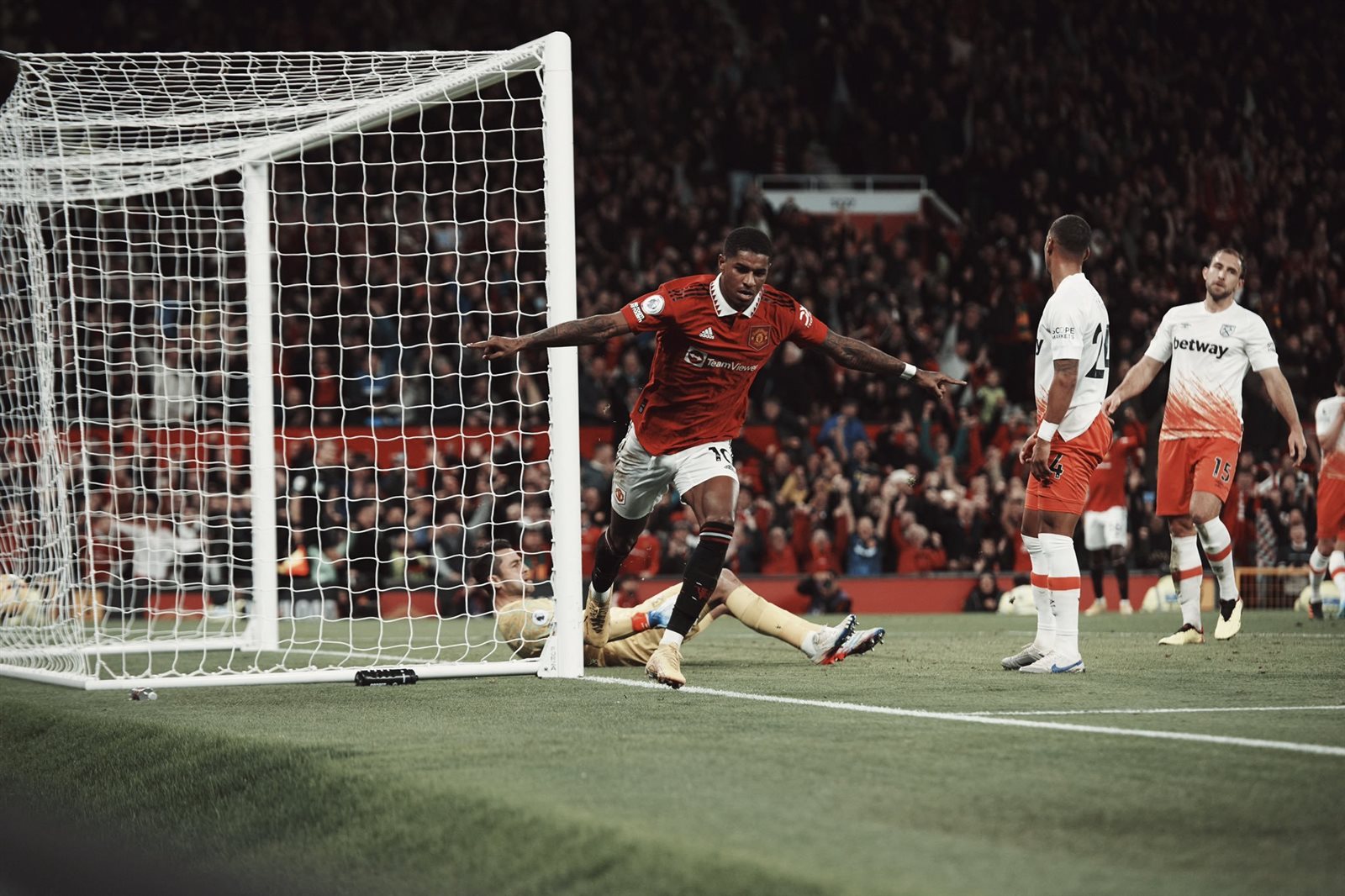 تقدم ماركوس راشفورد، مهاجم فريق مانشستر يونايتد،بالهدف الأول لفريقه على حساب وست هام يونايتد 1-0، خلال أحداث الشوط الأول من المباراة التي تجمع الفريقين حاليا على ملعب "أولد ترافورد"، ضمن منافسات الجولة الرابعة عشرة من الدوري الإنجليزي موسم 2022-2023.