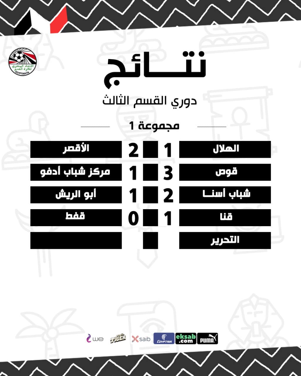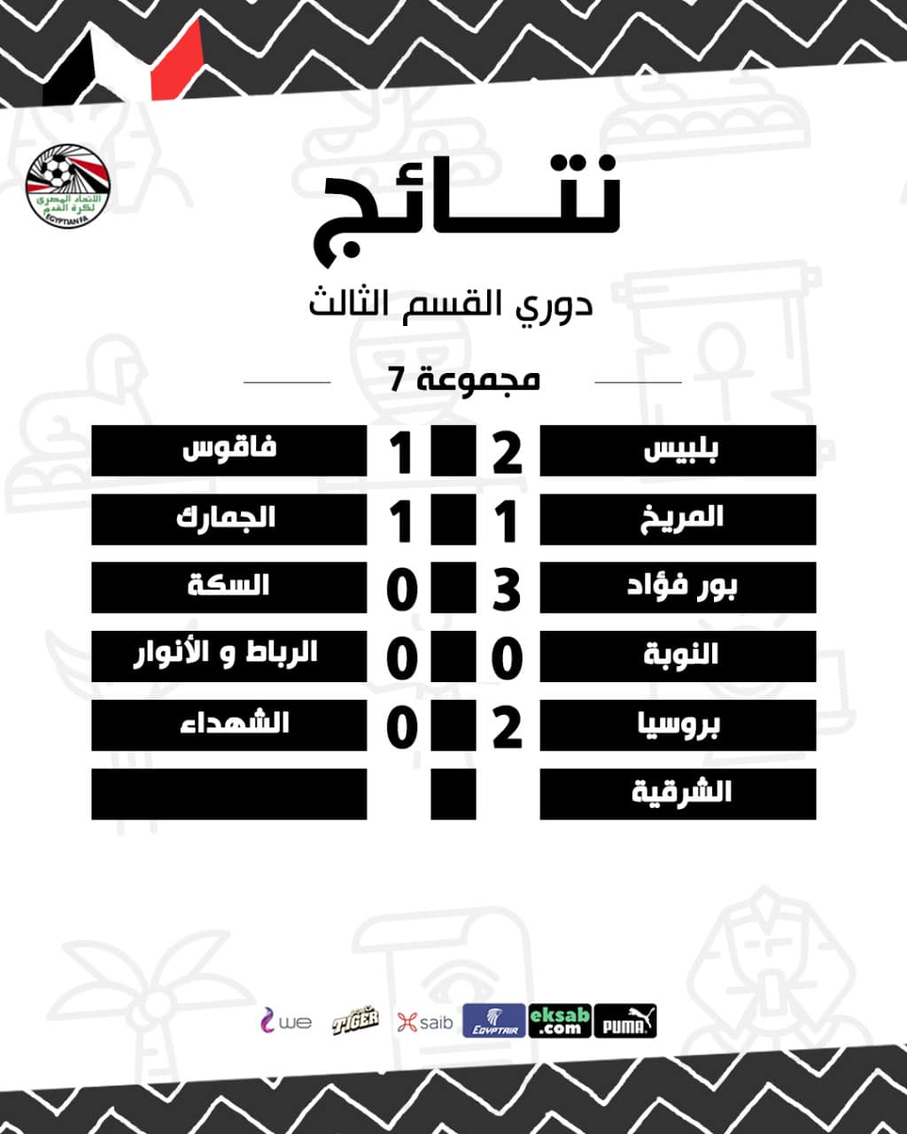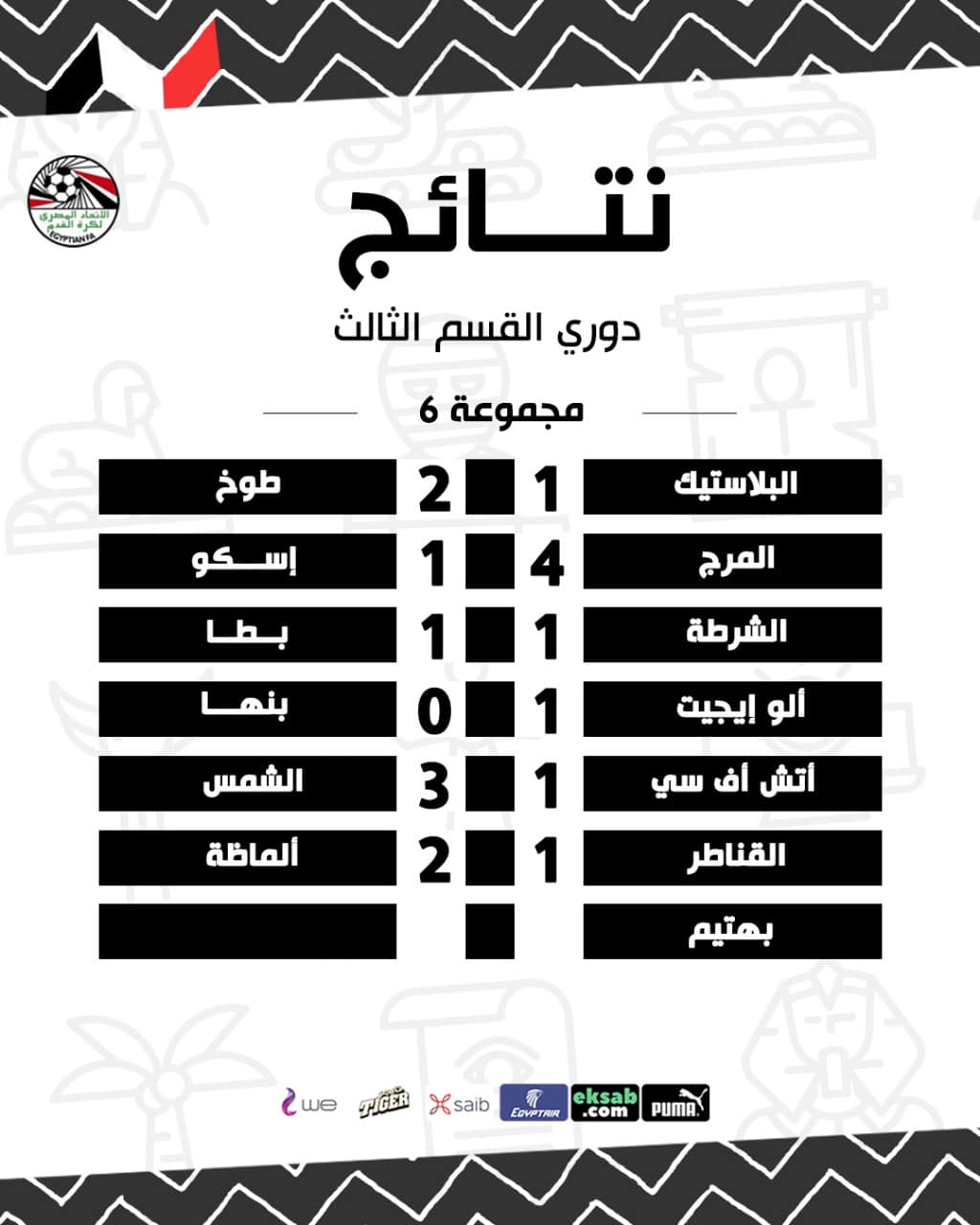 تعرف علي نتائج القسم الثالث بالدوري المصري