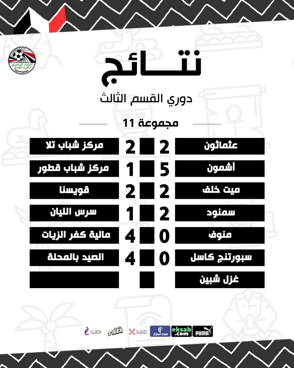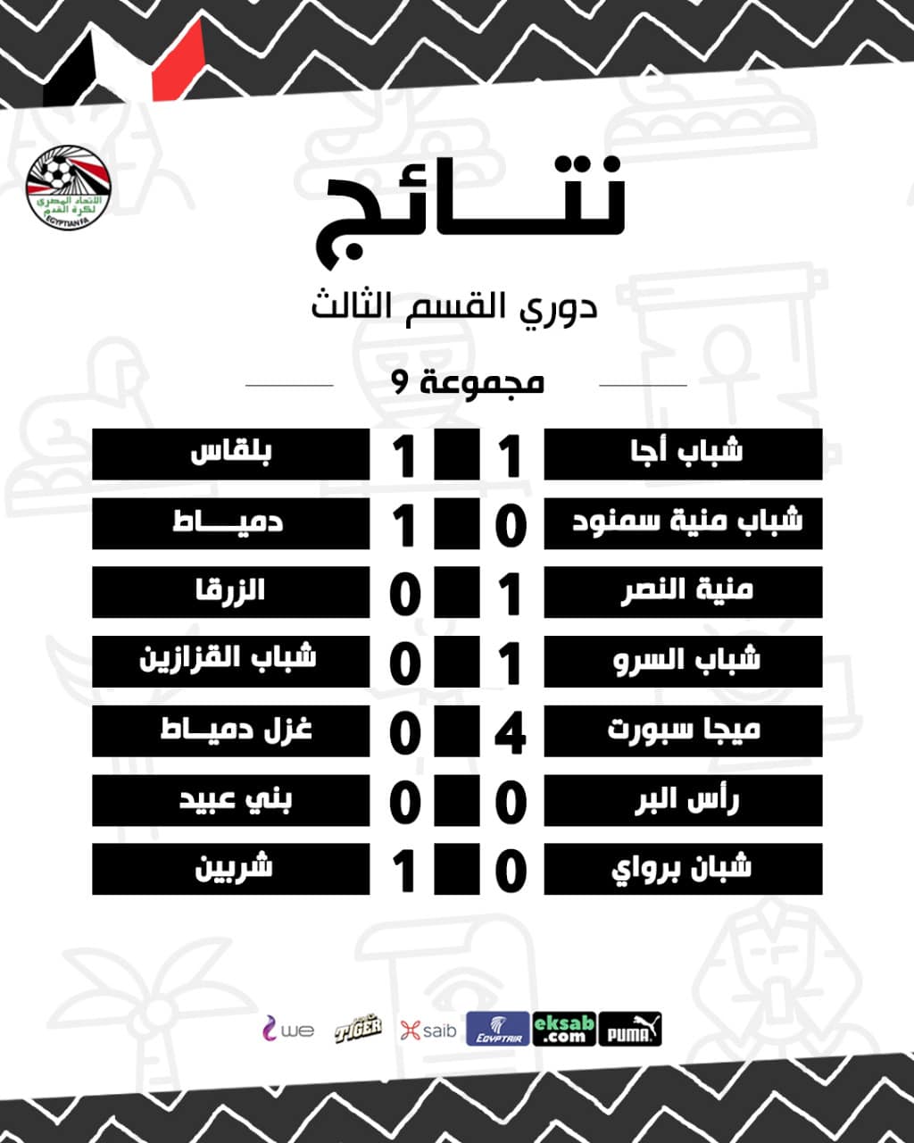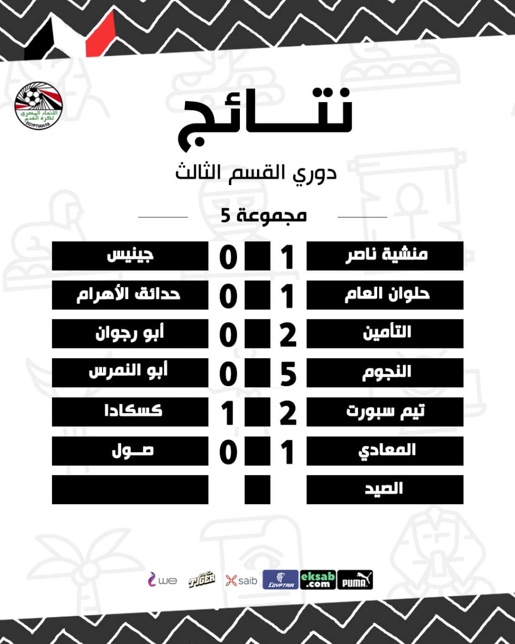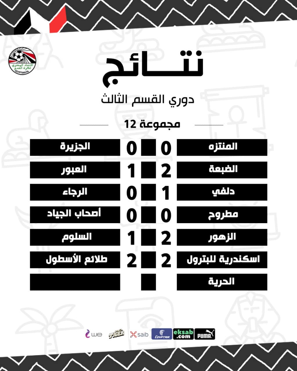 تعرف علي نتائج القسم الثالث بالدوري المصري
