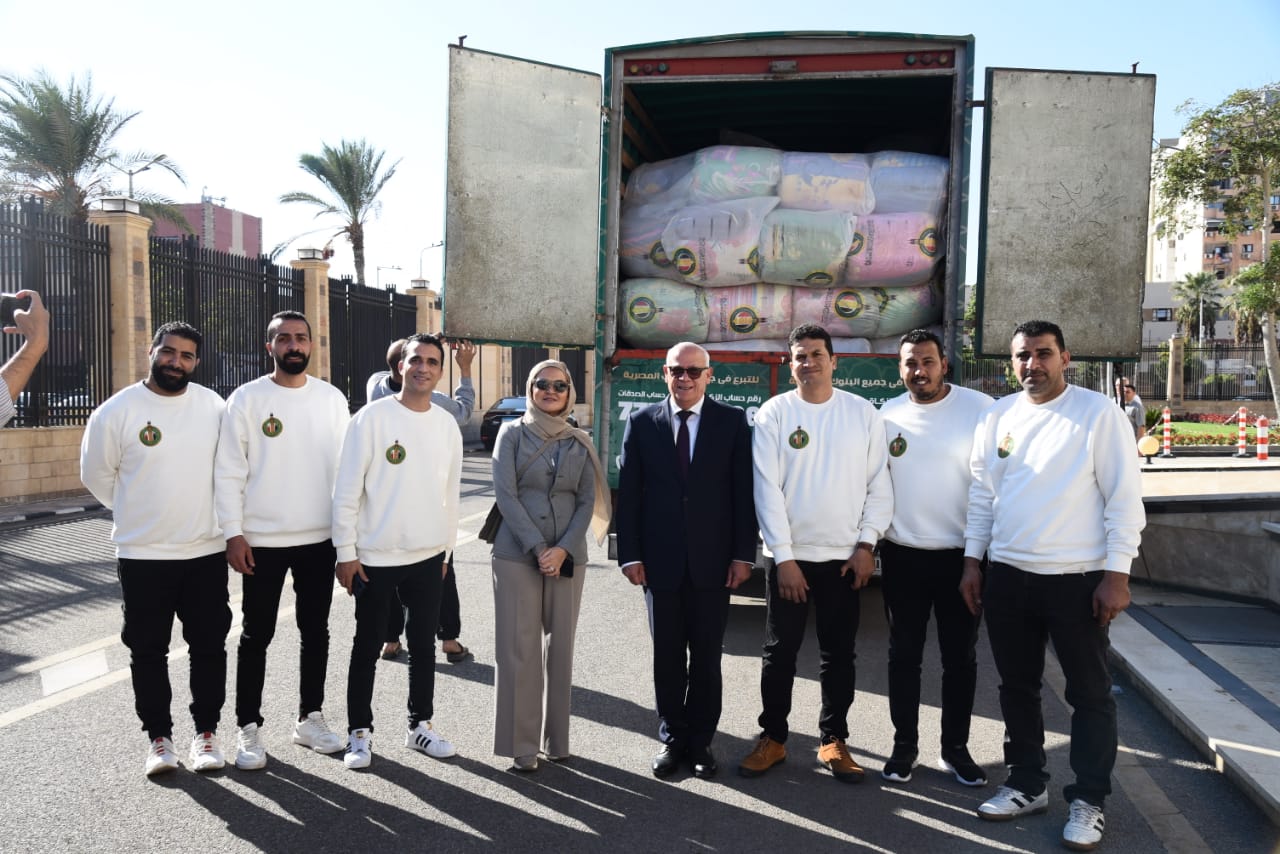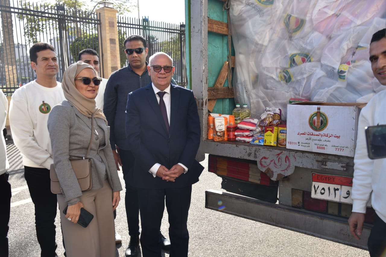 محافظ بورسعيد ورئيس مجلس أمناء بيت الزكاة يتفقدان قافلة تبرعات من بيت الزكاة والصدقات