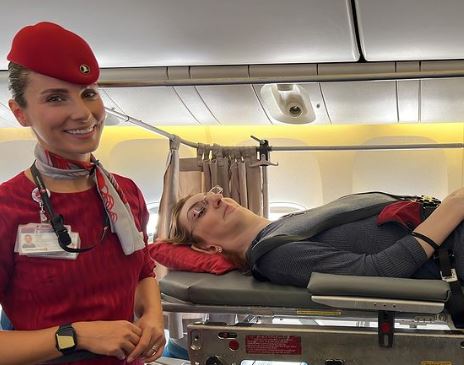تمكنت التركية روميسا جيلجي، أطول امرأة على قيد الحياة (2.15 متر) وفق موسوعة "جينيس" للأرقام القياسية، من السفر جوا لأول مرة في حياتها.