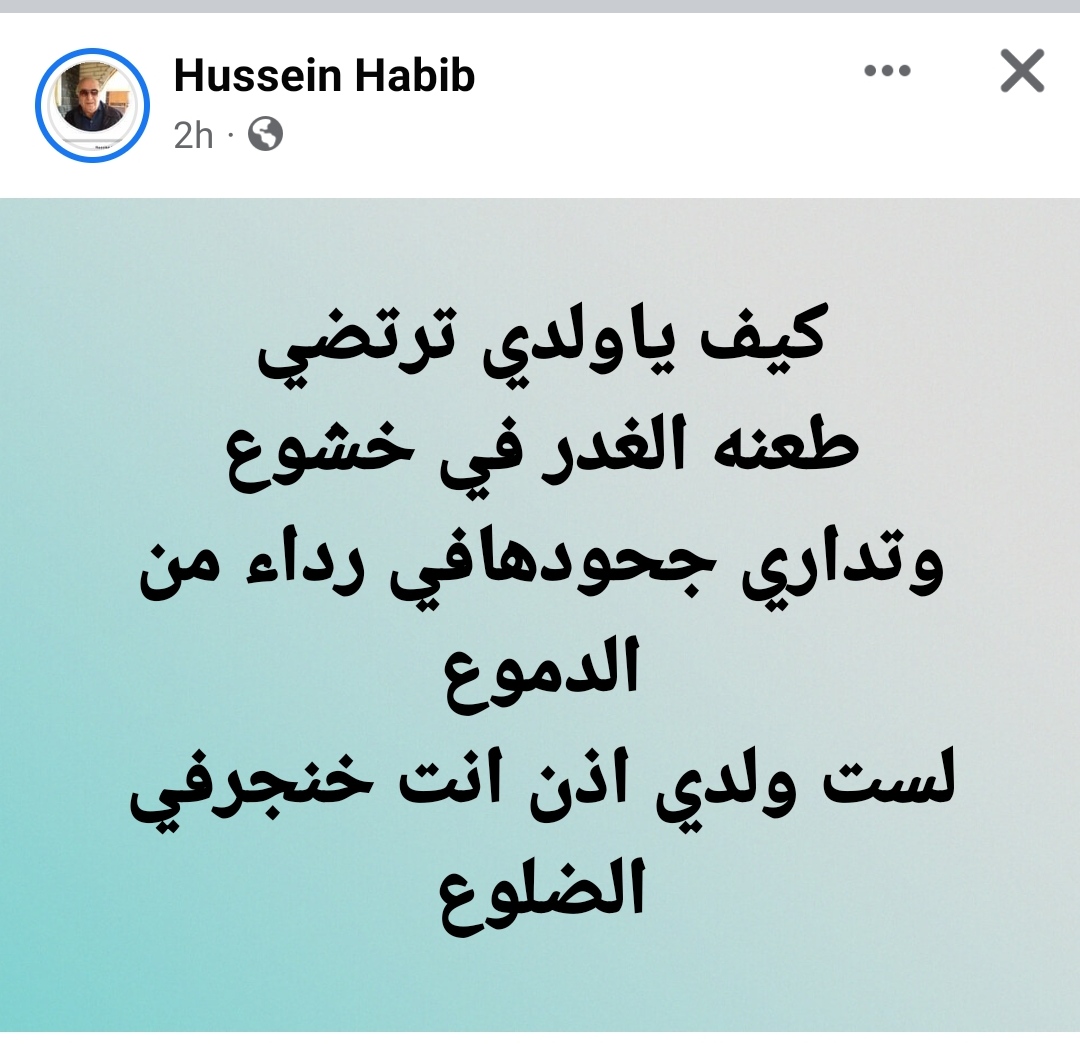 وعلق قائلا:"كيف ياولدي ترتضي ..طعنه الغدر في خشوع..وتداري جحودها في رداء من الدموع..لست ولدي اذن انت خنجر في الضلوع".