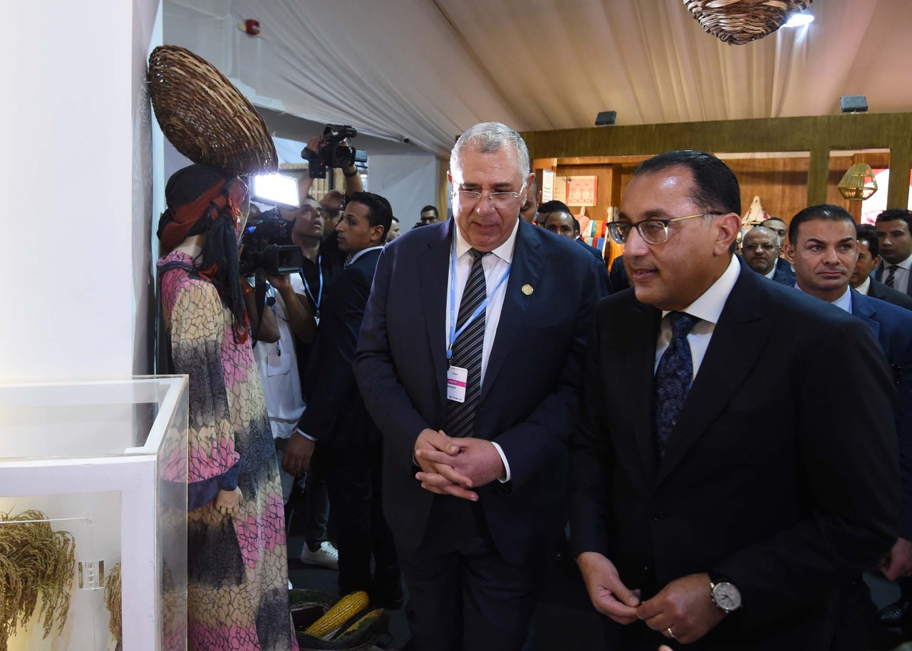تفقد مصطفى مدبولي رئيس مجلس الوزراء يرافقه السيد القصير وزير الزراعة واستصلاح الأراضي جناح وزارة الزراعة المقام على هامش قمة المناخ cop27 بالمنطقة الخضراء في مدينة شرم الشيخ