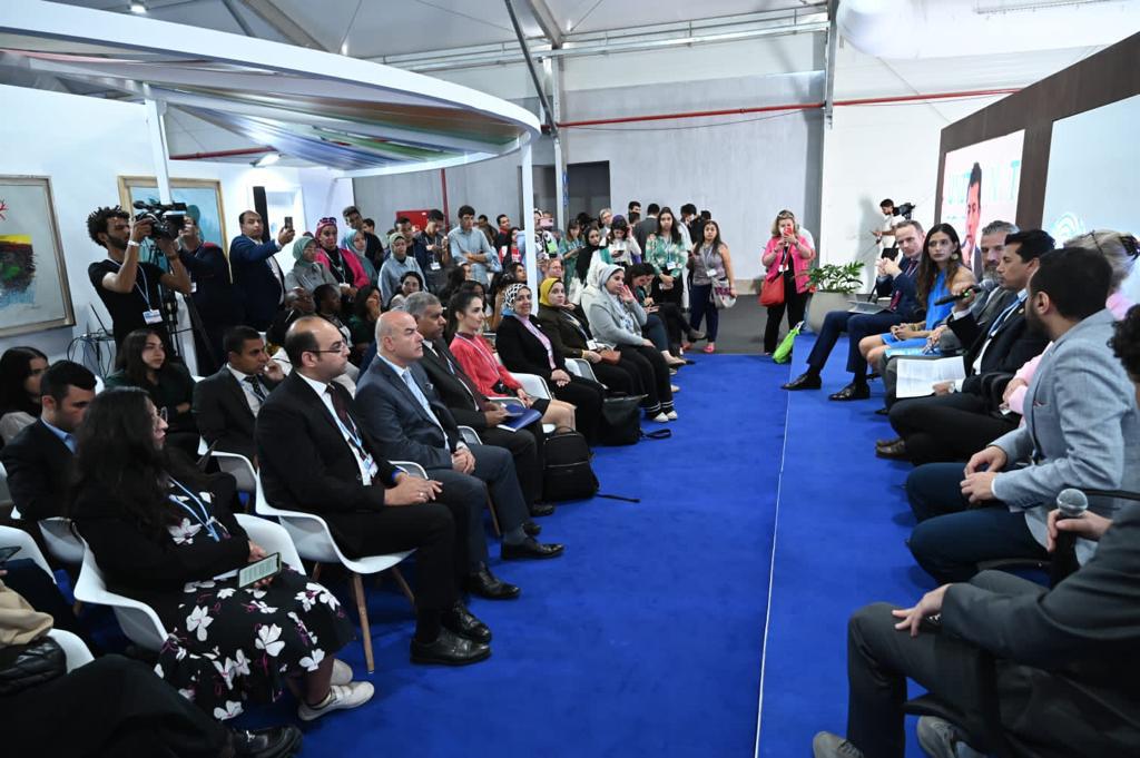 وزير الشباب والرياضة يشهد جلسة "الشباب والمناخ" بجناح اليونيسيف