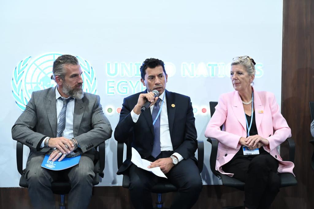 شهد الدكتور أشرف صبحي وزير الشباب والرياضة، جلسة بعنوان "الشباب والمناخ" بجناح اليونيسيف داخل المنطقة الزرقاء، بحضور السيد جيرمي هوبكنز ممثل منظمة الأمم المتحدة للطفولة في مصر "اليونيسيف"، والسيدة فريدريكا مايير ممثل صندوق الأمم المتحدة للسكان بمصر، ضمن فعاليات الدورة الـ 27 لمؤتمر أطراف اتفاقية الأمم المتحدة الإطارية لتغير المناخ COP27،